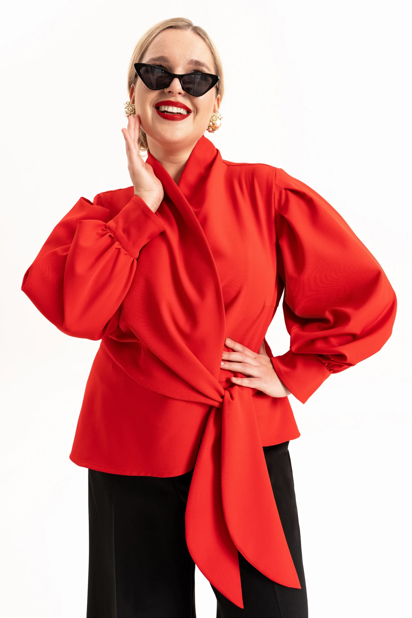 Оригинальная женственная блуза на запах с вырезом станет незаменимой вещью в Вашем гардеробе. Всесезонная блуза с длинными рукавами на манжетах легко впишется в Ваш повседневный, вечерний, а также деловой офисный стиль. Роскошная блузка сочетает в себе легкость и комфорт. Блуза с отрезной баской и воротником стойкой переходящей в борта. Застежка на потайную петлю и пуговицу и на завязки. Рукав длинный, втачной на манжете. По окату рукава обработаны складки. Вы сможете носить эту блузу не только летом, но и осенью, зимой и весной. Стильная женская блуза класса люкс соответствует модным тенденциям 2025-26 года. Ткань отлично тянется и обеспечивает идеальную посадку по фигуре. Мы уверены, что высокое качество Вас не разочарует! Широкий размерный ряд, включающий большие размеры, позволит Вам подобрать подходящий размер. Праздничная блузка скроет несовершенства фигуры, выгодно подчеркивая ваши красоту, женственность и индивидуальность. Элегантная и красивая блуза станет идеальным вариантом как для торжественных мероприятий: выпускной, корпоратив, свадьба, любой другой праздник, Новый год, так и для деловых и повседневных встреч, офиса. Нарядная модная блузка отлично подойдет для фотосессии, похода в театр и свидания. Сезоны, когда вы сможете ее носить: осень, зима, весна.