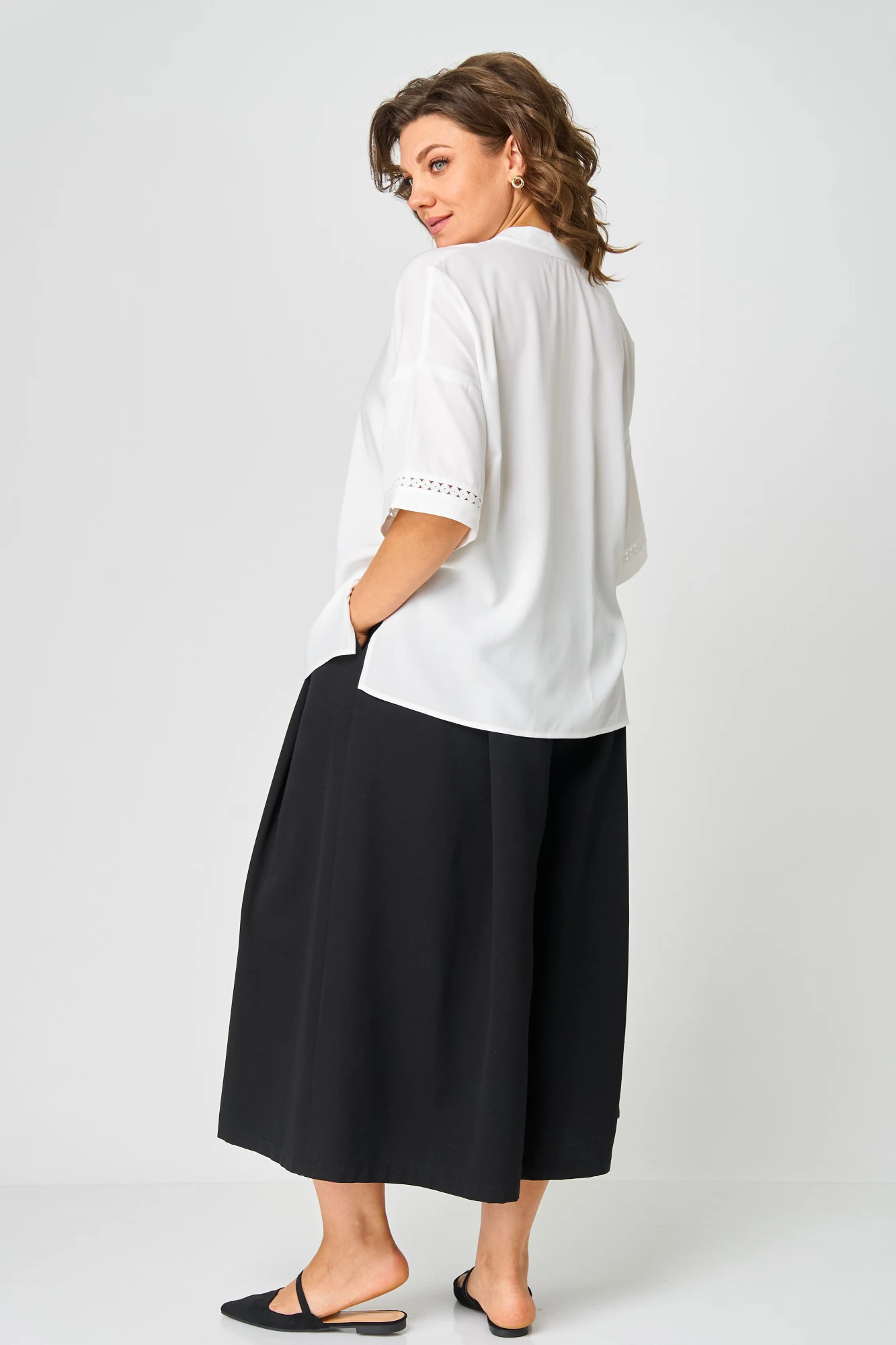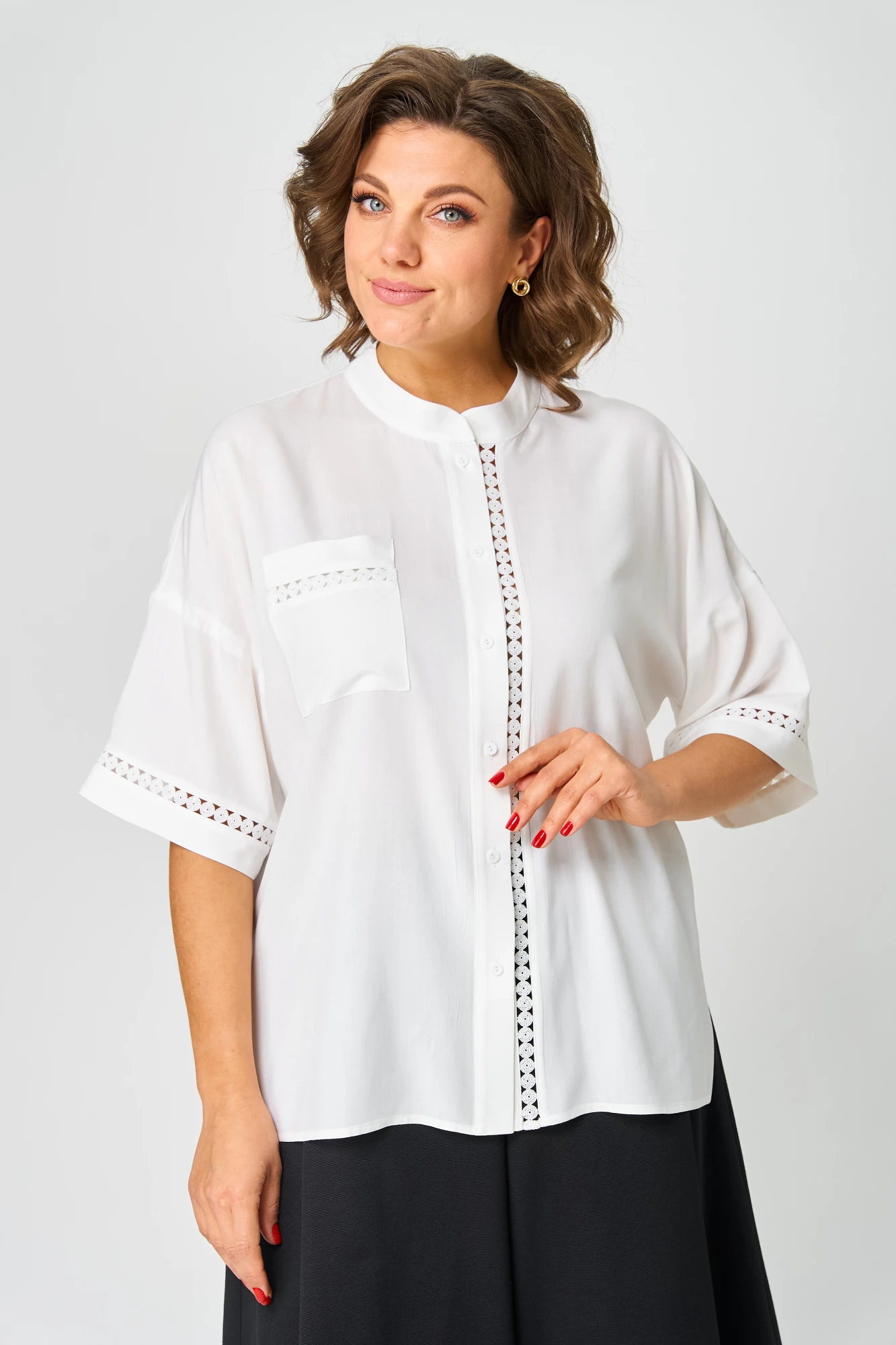 Блузка женская с кружевными вставками – это идеальный выбор для создания стильных и комфортных образов на каждый день. Изготовленная из 100% вискозы, она невероятно приятна к телу, дарит ощущение легкости и комфорта в течение всего дня. Стойка придает модели женственности и элегантности, рукава длины ¾ на спущенной пройме дают свободу движения, а свободный крой позволяет чувствовать себя комфортно и уверенно в любой ситуации. Блузка застегивается на пуговицы, что добавляет ей классический и утонченный вид.