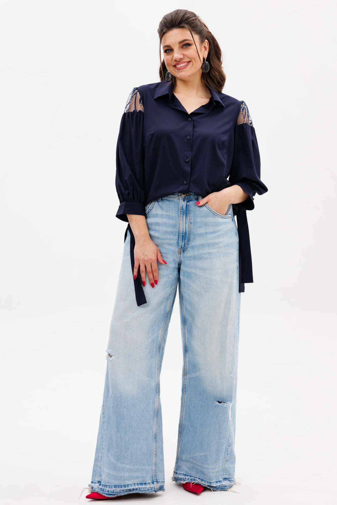 Элегантная блуза с кружевными вставками по рукавам станет идеальным дополнением вашего гардероба.