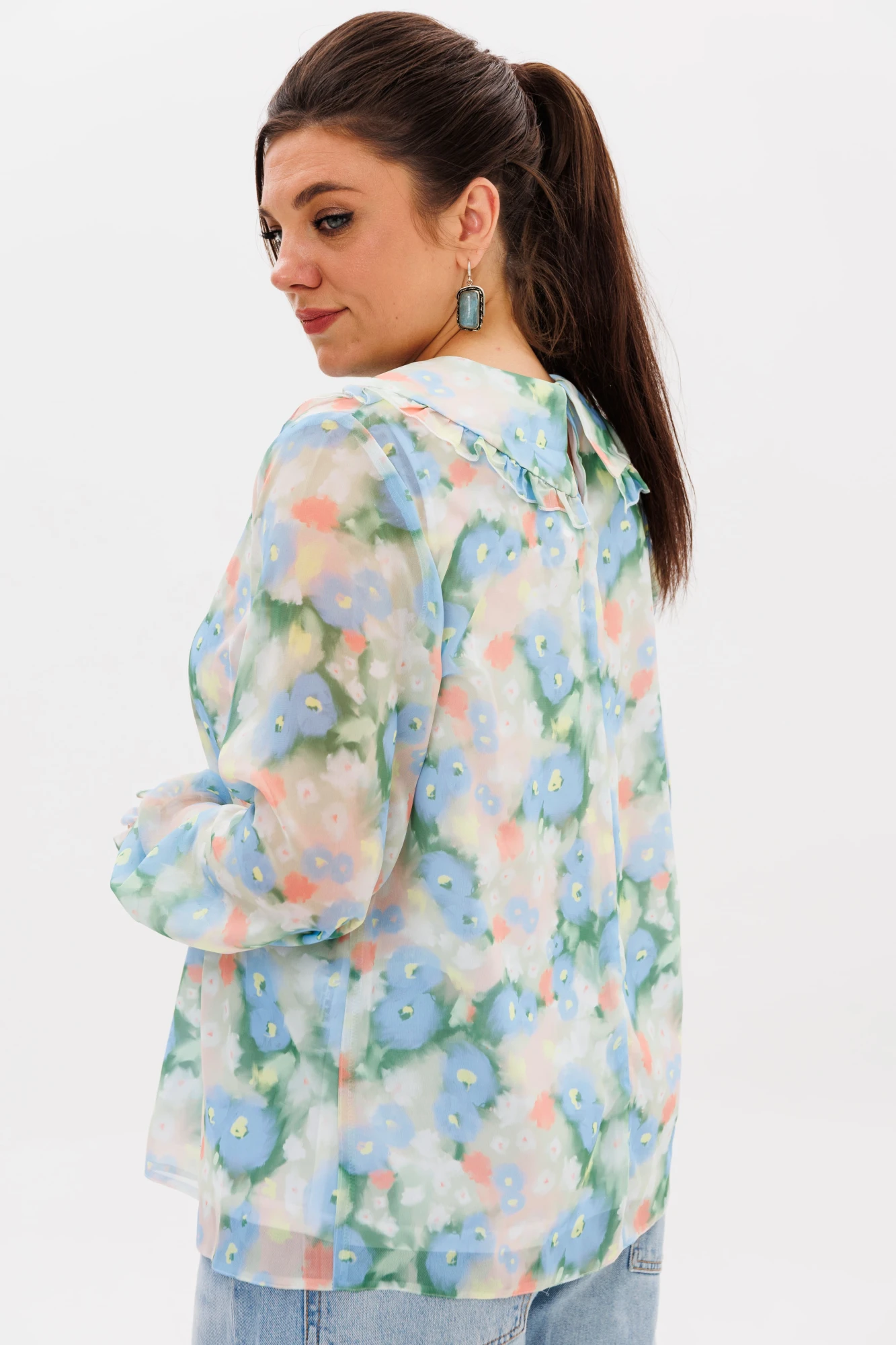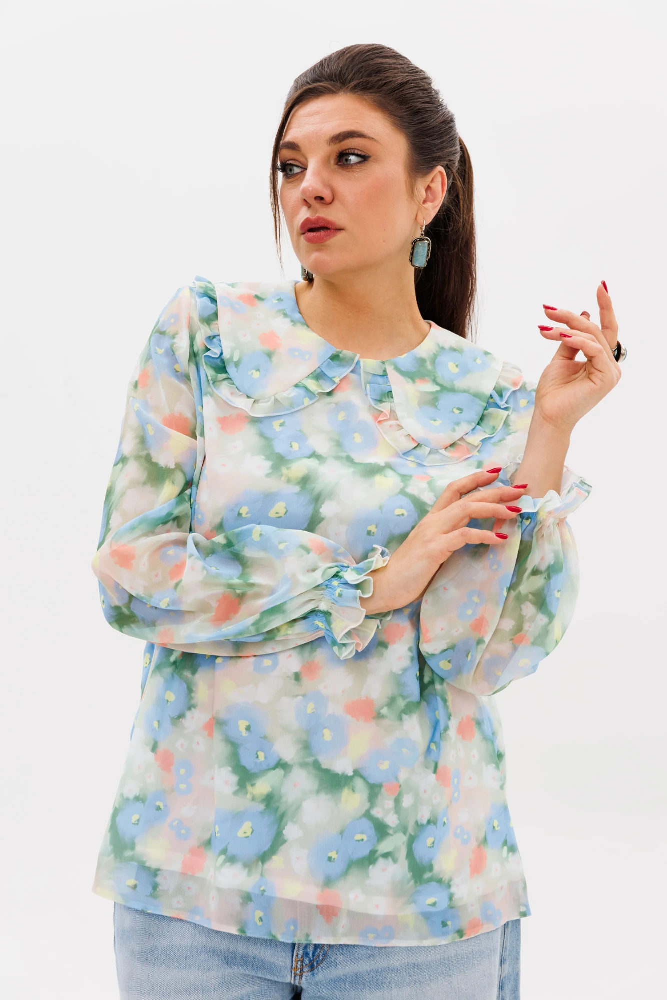 Очаровательный элемент этой блузы - это воротник с рюшей, который придаёт ей особый шарм. Этот детальный акцент подчеркнет вашу внутреннюю девочку и добавит нотку игривости к вашему образу.