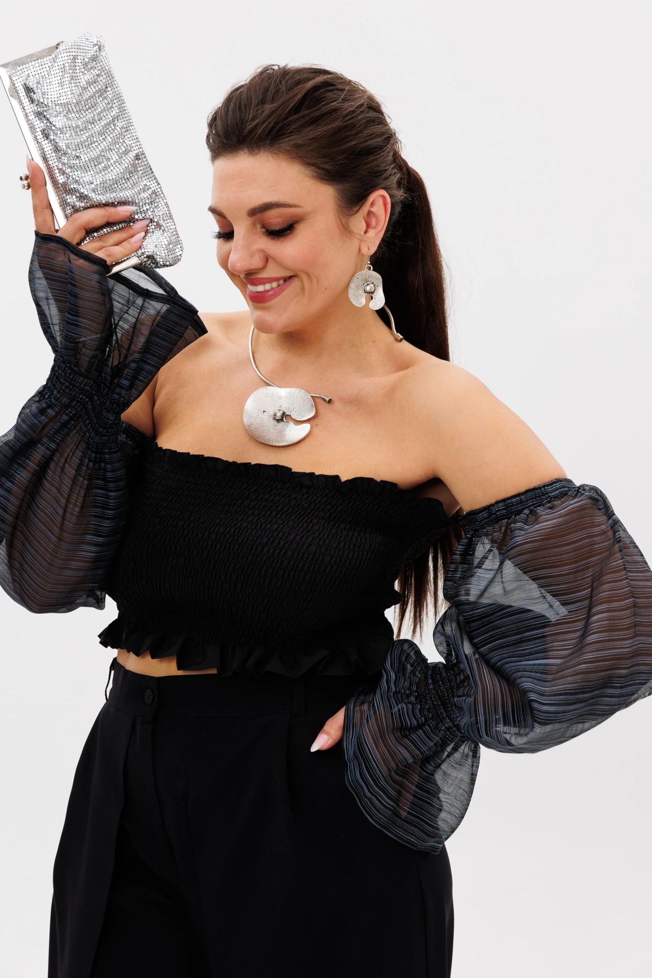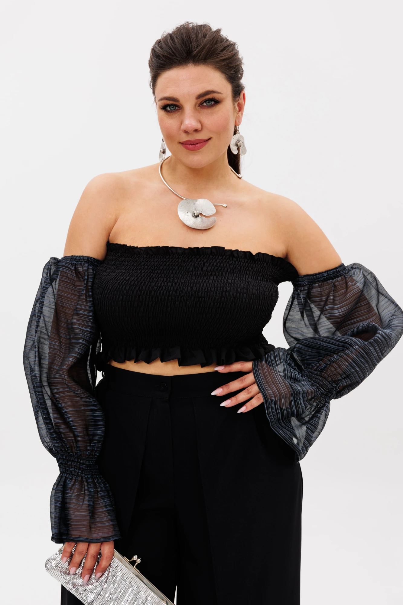 Блуза с романтичными рукавами станет эффектным элементом вашего праздничного образа.