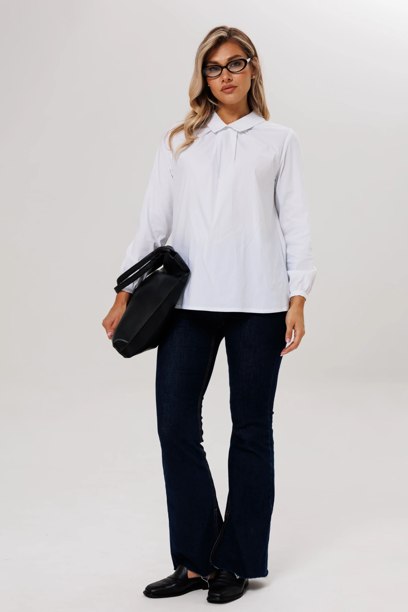 Универсальность этой блузы позволяет ей быть безупречным выбором как для строгого офисного стиля, задавая тон профессиональной уверенности, так и для школьного ансамбля, внося ноту собранности и аккуратной элегантности в повседневный образ. Она воплощает в себе идеальный баланс между сдержанной красотой, практичностью и непревзойденным удобством, становясь той самой вещью, на которой строится базовый гардероб.