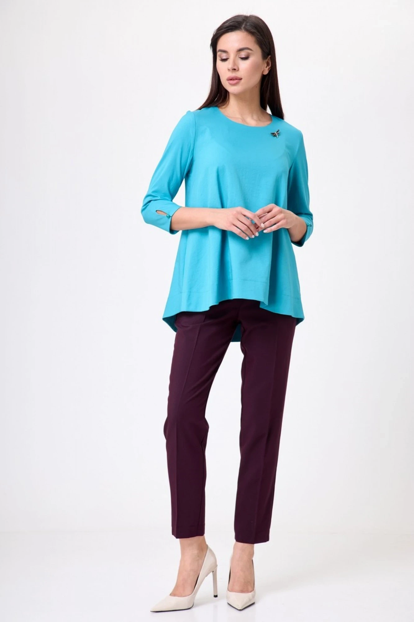 Блуза универсальная, идеальная для работы в офисе. Силуэт трапеция, длиной до бедра, спинка чуть длиннее. Рукав 3/4. По спинке слёзка, застежка на пуговицу. Дополнено съёмным поясом.