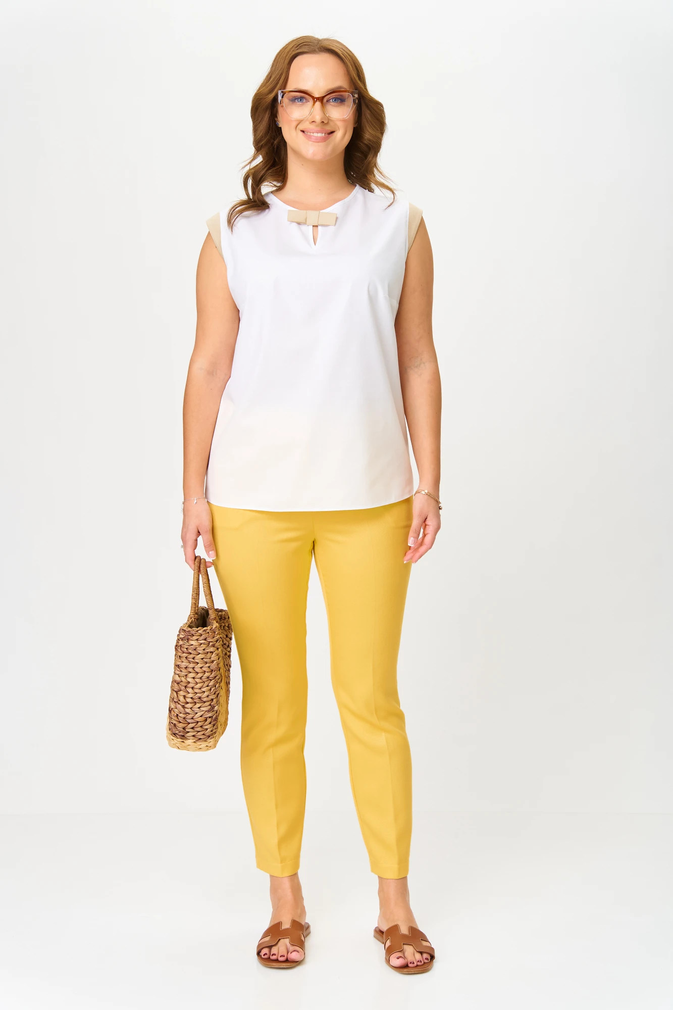 Блуза женская из хлопка полуприлегающего силуэта длиной до линии бедра для повседневной носки и торжественных случаев . Горловина топа с разрезом в форме капли . Разрез застегивается на потайную кнопку . Рукава вточный .