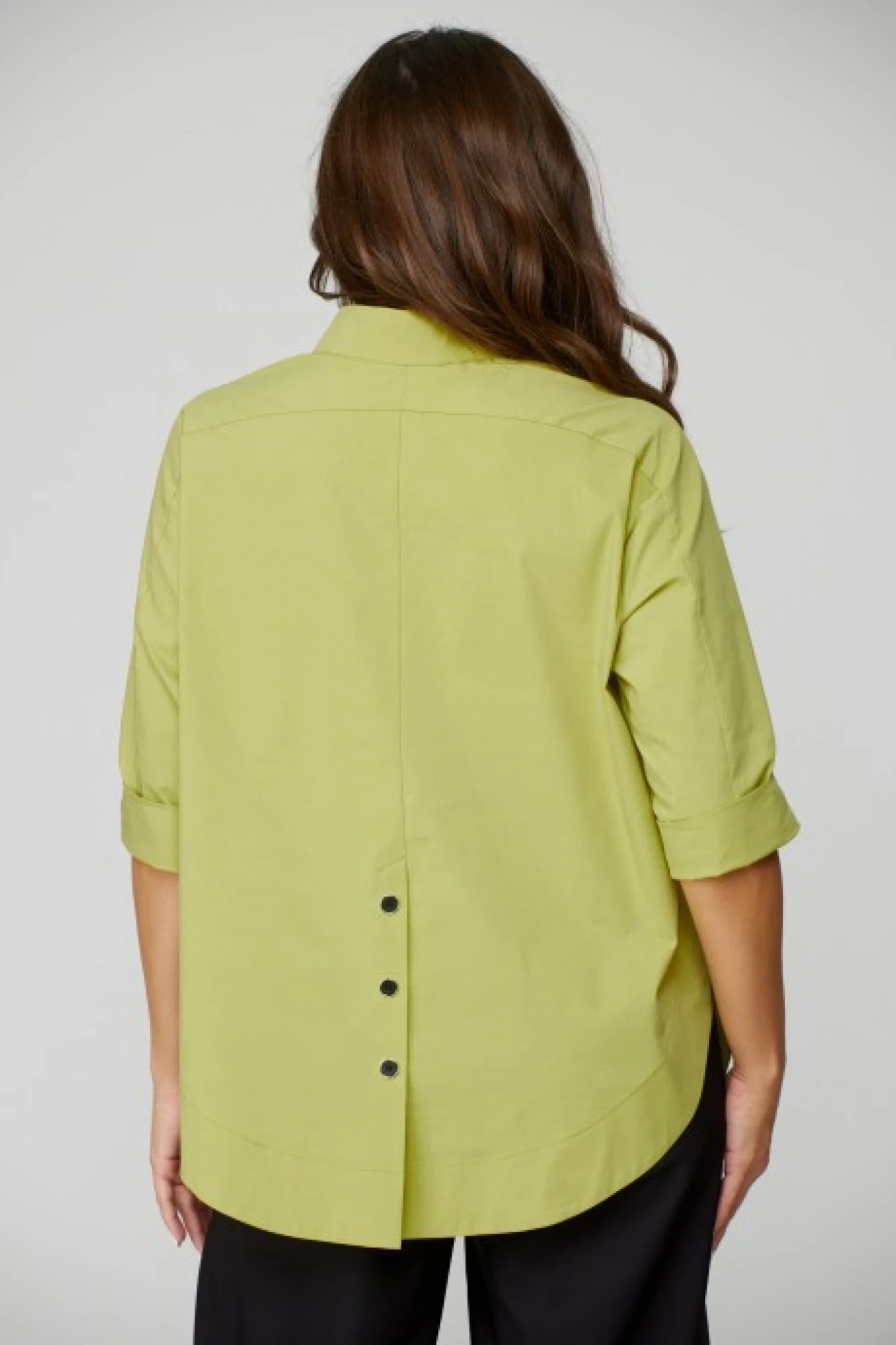 Эффектная блузка-рубашка в стиле оверсайз - настоящий «must have» , образ будет стильным в любом размере. Необычный сложный покрой блузки делает ее модной, а образ аховым... Силуэт свободный, прямой, слегка расширен в области линии груди, чтобы поддержать образ данной модели.По переду полочки неглубокий разрез V-образной формы и воротник рубашечного типа с отрезной стойкой и застежкой на петлю-пуговицу. Верхняя часть переда отлетная, линия фигурная, соединяется по боковым швам с деталью спинки. Низ обработан фигурной бейкой. Нижняя часть переда выполнена с имитацией планки по переду и пуговицами, по бокам - разрезы. По центру спинки расположена неглубокая складка с декоративными пуговицами. Рукав с углубленной проймой и со спущенным окатом, по центру рукава расположен элемент детали, переходящий в кокетку по спинке. По низу рукава выполнен притачной манжет. Экспериментируйте с различными вариантами брюк, джинсами, шортами. Вы несомненно будете неотразимы и неповторимы!