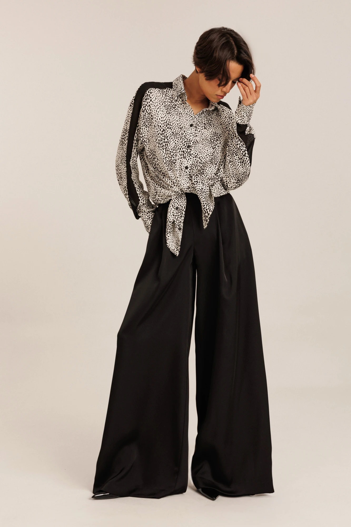 Блузка женская прямого силуэта. Борт обработан цельнокроеными планками. Низ блузки прямой. Рукав втачной, спущенный, с манжетой по низу. По плечевому шву и рукаву имеется декоративная цельнокроеная вставка из шифона. Спинка на кокетке.