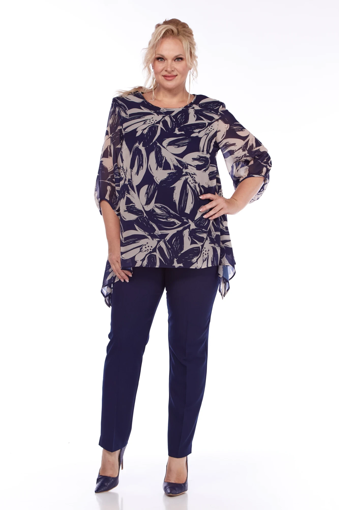 Блуза сводного кроя из принтованного шифона, что придает уникальность стилю своими красками. На полочке нагрудные вытачки, вырез горловины аккуратной округлой формы. Рукав втачной, свободный, низ присборен.