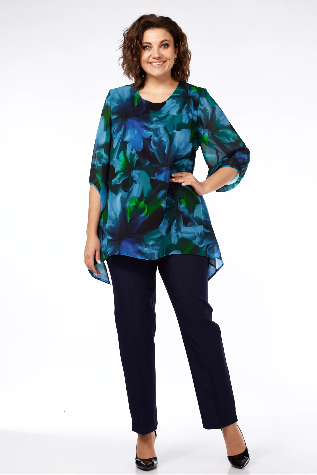 Блуза сводного кроя из принтованного шифона, что придает уникальность стилю своими красками. На полочке нагрудные вытачки, вырез горловины аккуратной округлой формы. Рукав втачной, свободный, низ присборен.