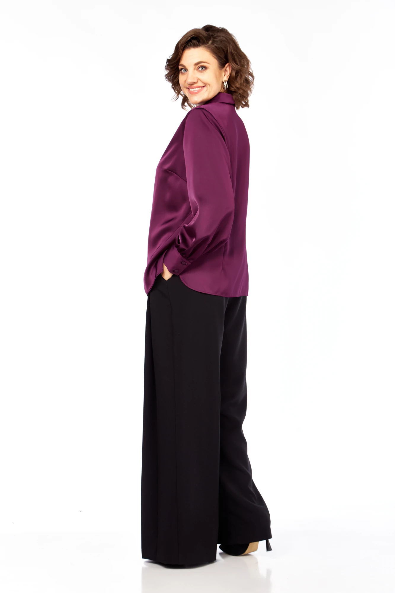 Прекрасный вариант для визитов в офис, а так же в место, где уместен деловой стиль. Идеальные возможности для создания современного офисного стиля с использованием хлопковой блузы. Модель полуприлегающего силуэта с застежкой спереди на пуговицы. Воротник аккуратный отложной. Рукав втачной, по низу оформлен складками и притачной манжетой, застегивающейся на пуговицы. В боковых швах скругленные разрезы. Спинка с вертикальными выточками.