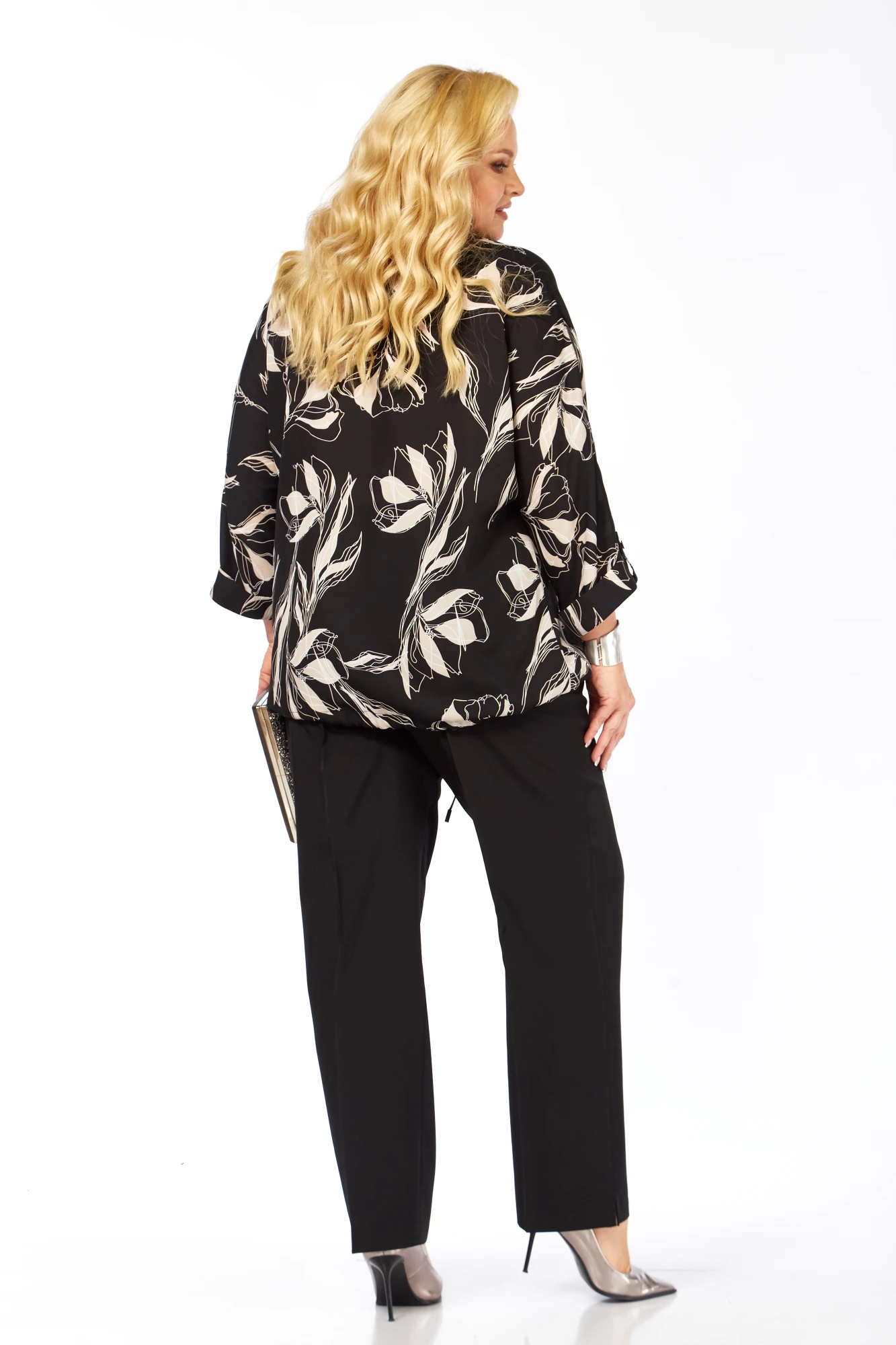 Блузка Элль-стиль 2416 а черный+принт цветы