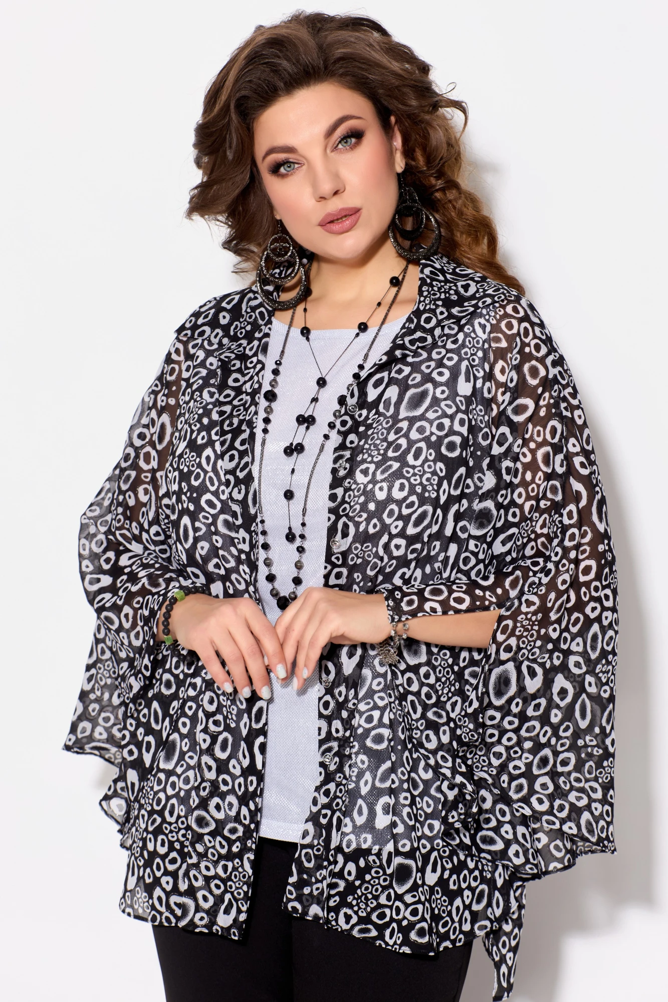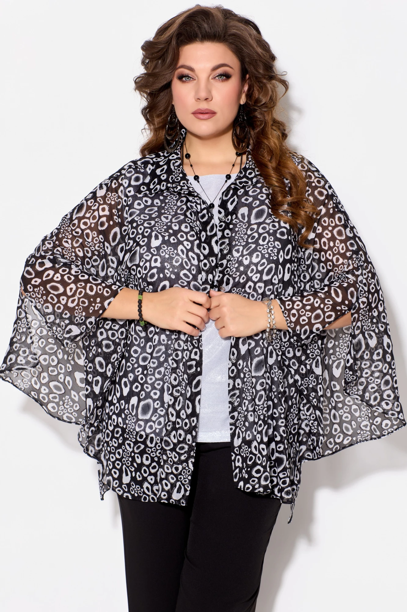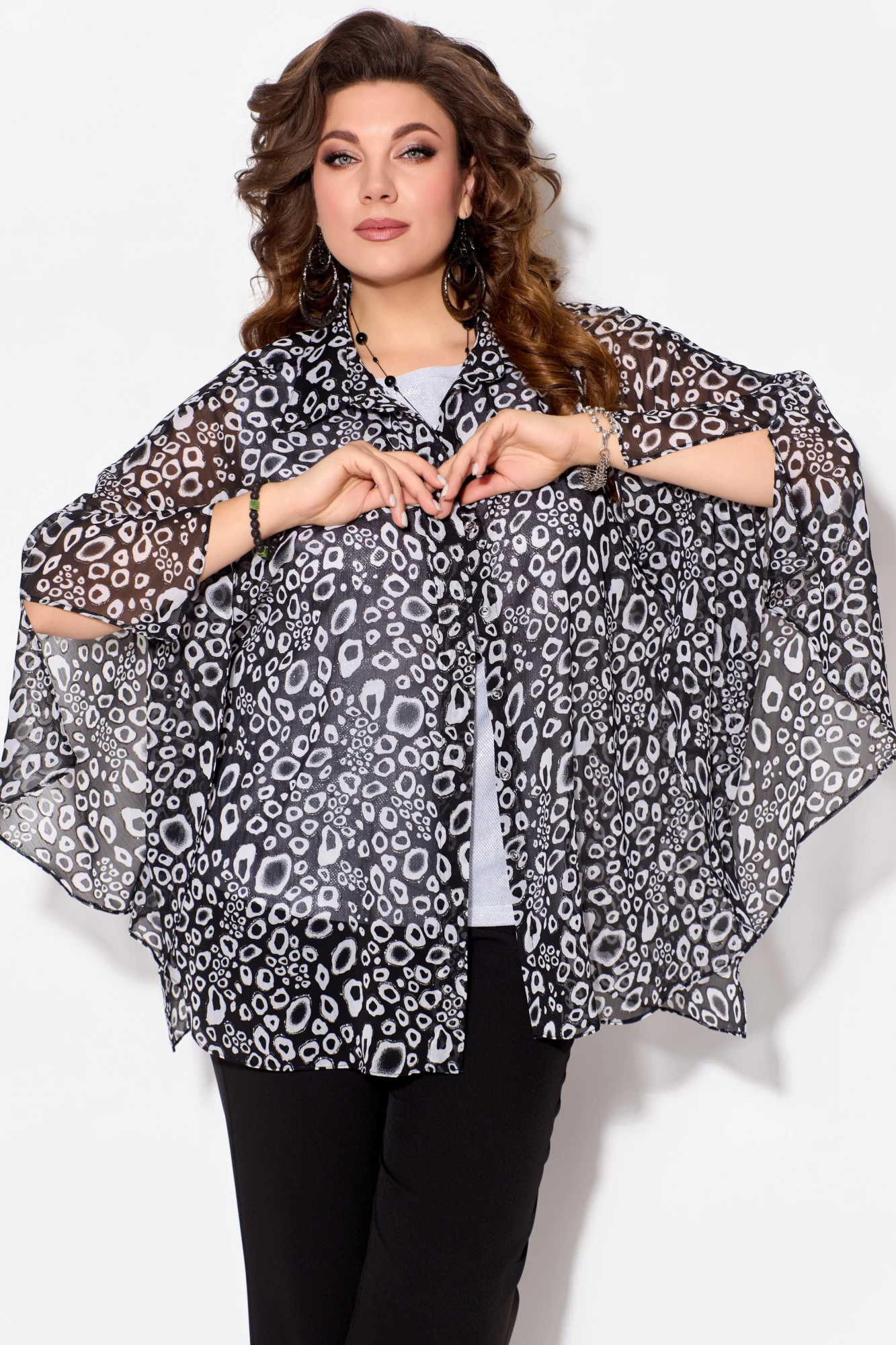 Нарядная, стильная и модная блузка "Ветрана" выполнена из плотной шифоновой ткани - креп-шифон. Блузка расширенная к низу. Полочка на потайную застежку на петли и пуговицы. Воротник рубашечного типа на стойке. Низ обработан швом в подгибку. Чудесная разлетайка "Аля-Пугачева" сделает Вас неотразимой на любом торжестве и в повседневной жизни!