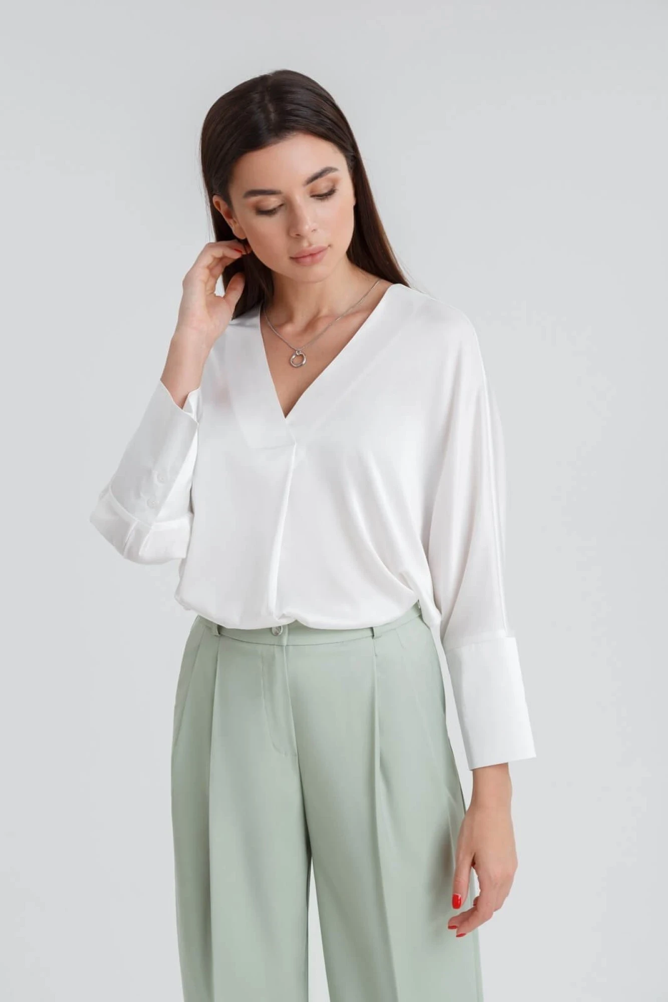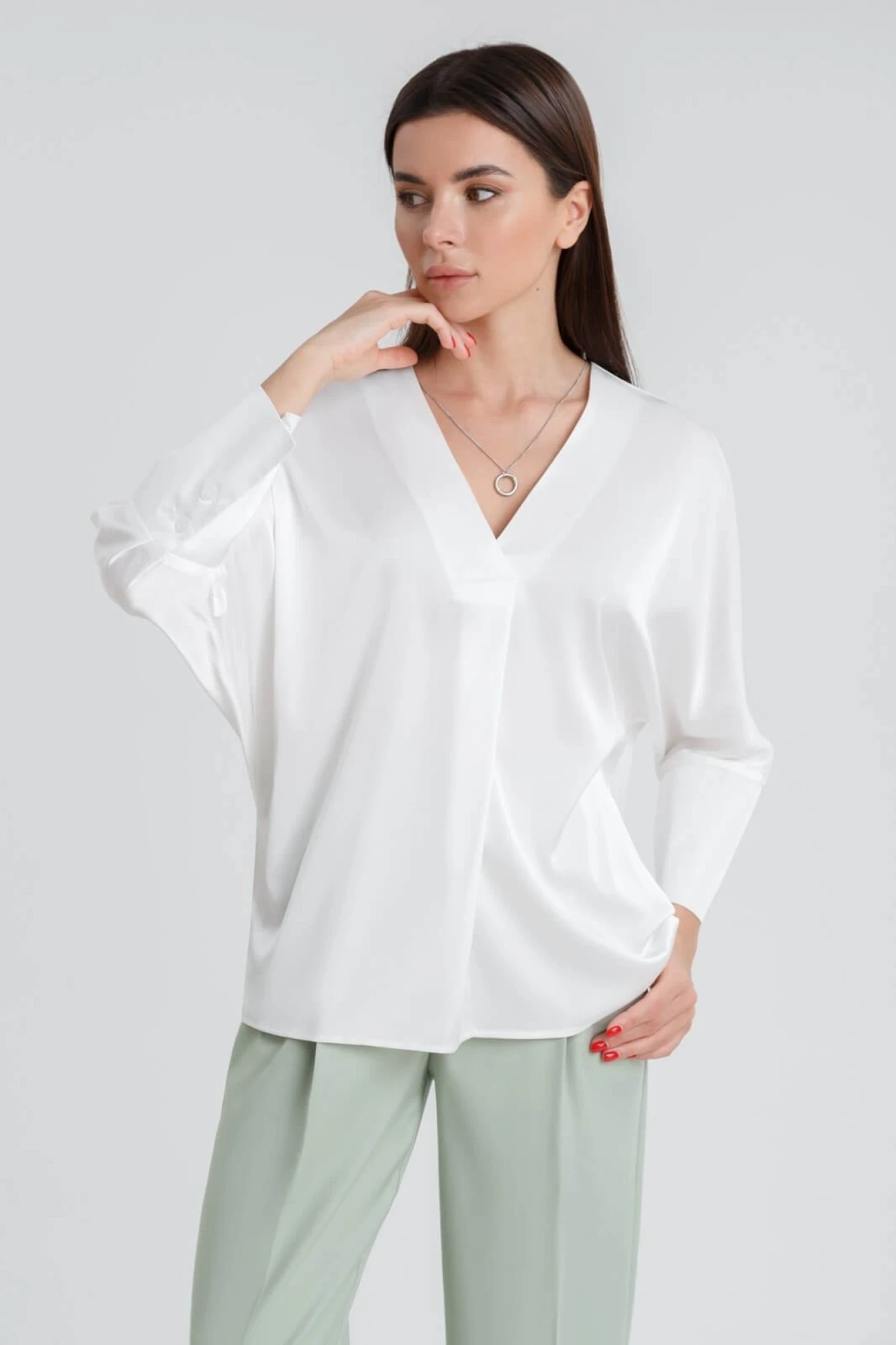 Блузка свободного силуэта. Выполнена из искусственого шелка матовой атласной фактуры.