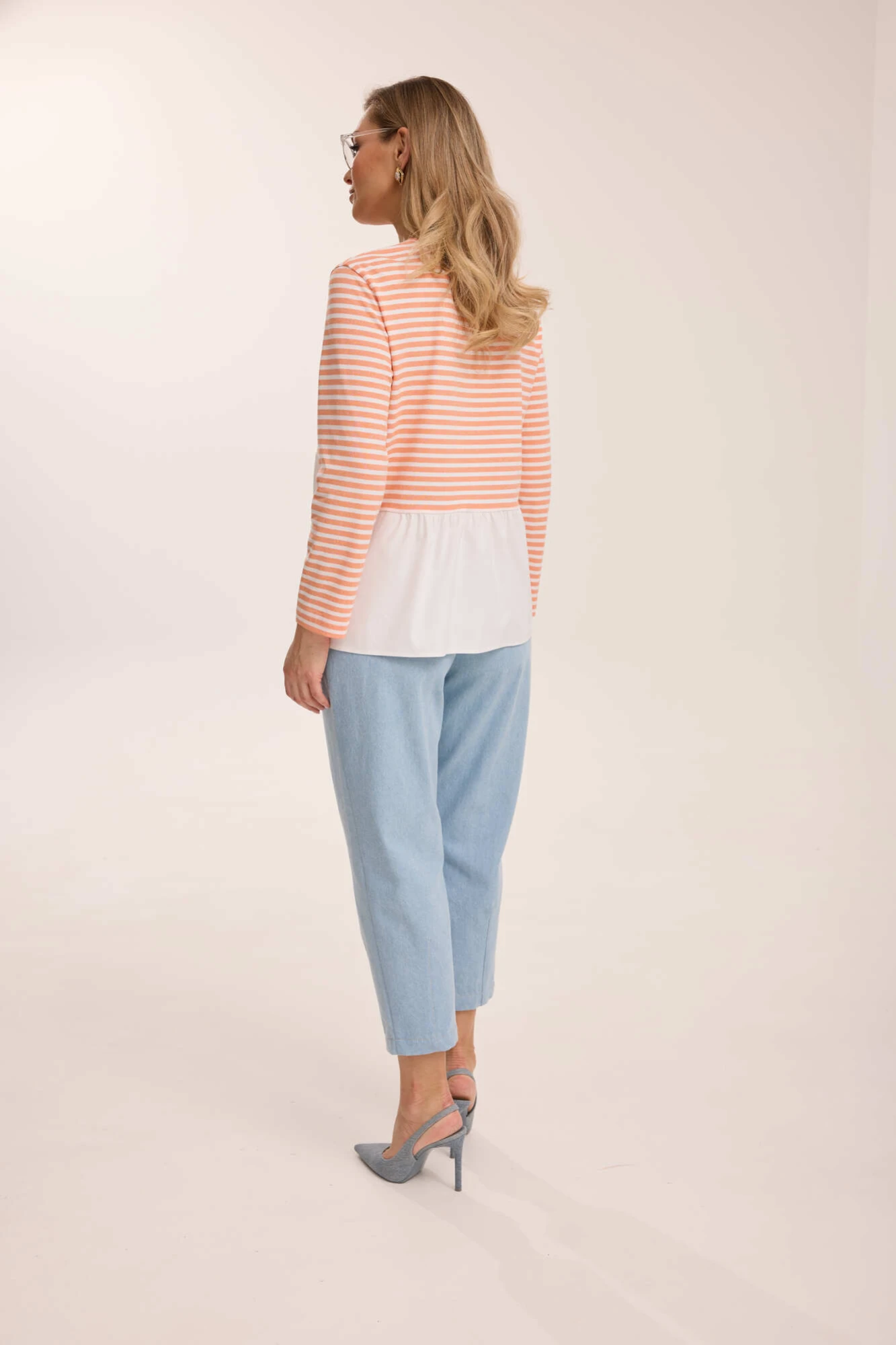 Джемпер женский прямого силуэта. Перед цельнокроеный с декоративной объемной брошью на булавке в виде цветка из ткани-компаньона. Спинка цельнокроеная. По низу джемпер обработан баской из ткани-компаньона. Плечо спущено, рукав длинный, одношовный. Горловина округлой формы, обработан притачной бейкой. Декоративные элементы и фурнитура могут отличаться от заявленных на фото. Цвет материала может отличаться по тону в зависимости от настроек вашего монитора!