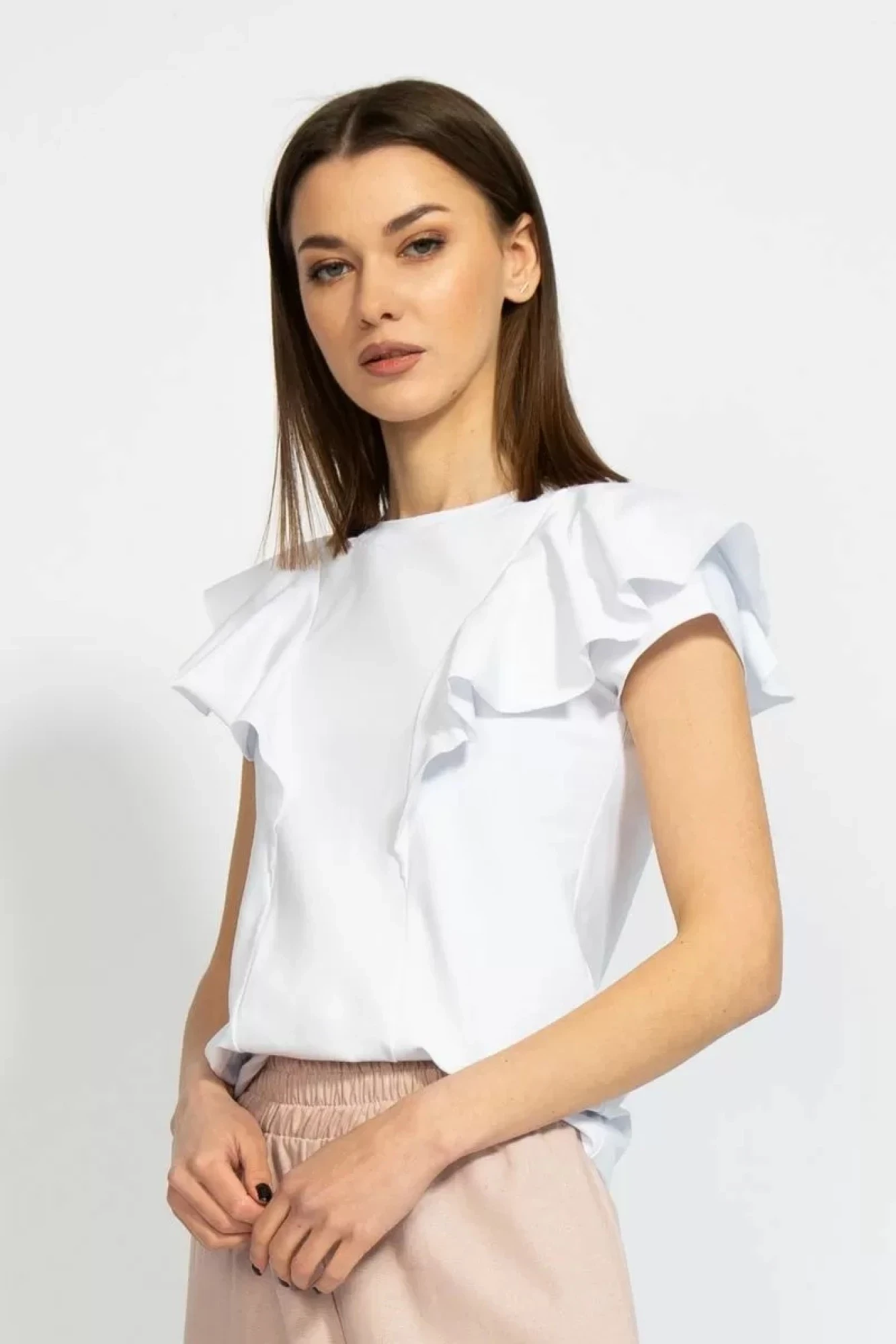 Джемер трикотажный, приталенного силуэта, с воланами в рельефах по переду и спинке. Ткань кулирная гладь , качество Пенье, плотность 200 г.м2.