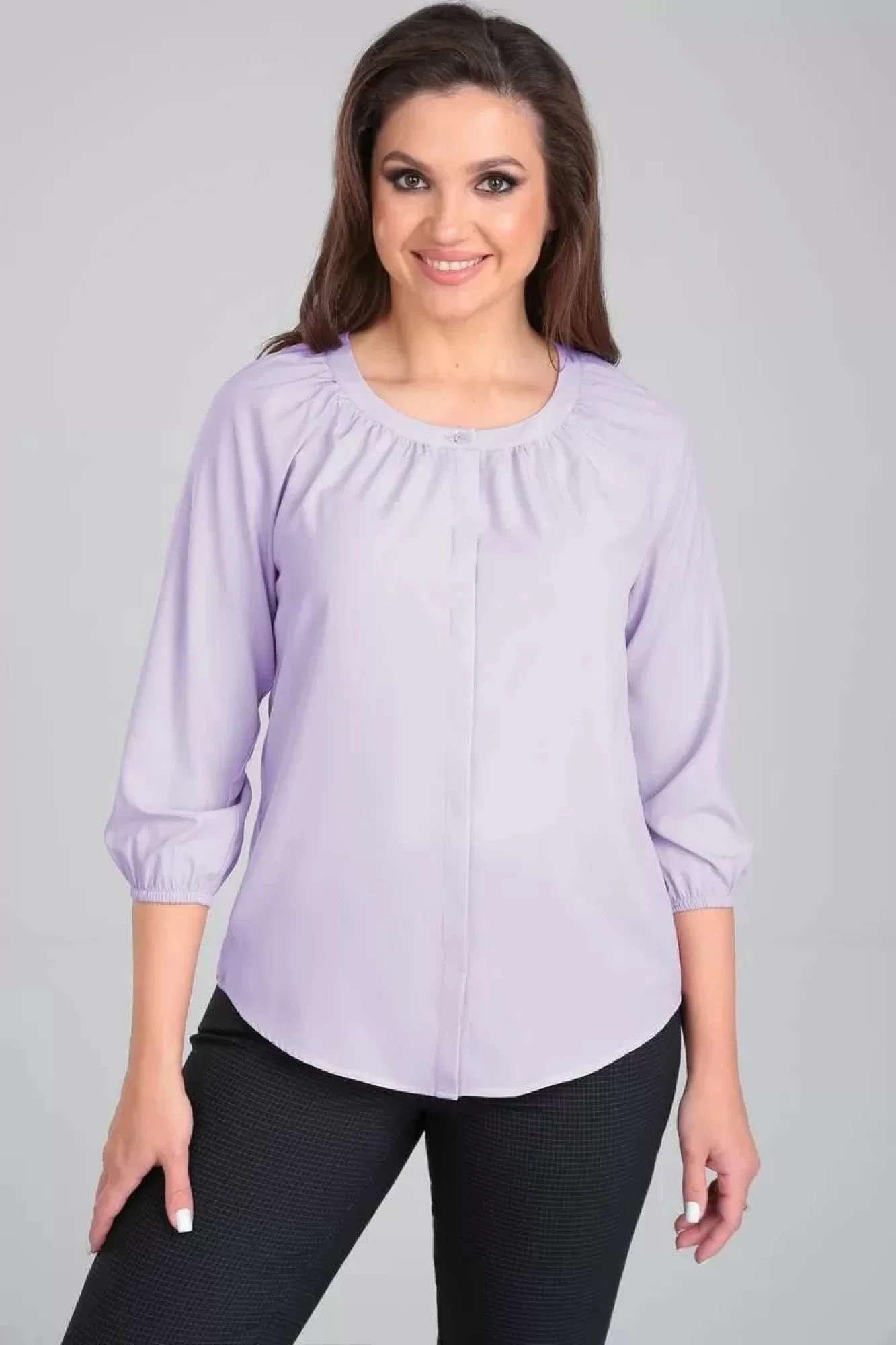 Блуза из креп-шифона. Рукав реглан, 3/4 на резинке по низу. Застежка центральная бортовая с цельнокроеной планкой застегивающаяся на потайные петли-пуговицы, вырез горловины круглый с притачной планкой и сборкой по горловине.