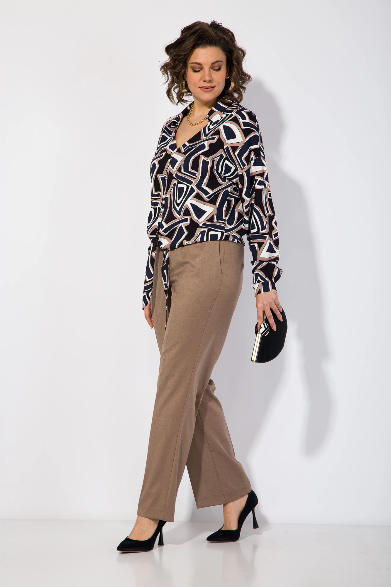 Блузка женская нарядная и для офиса идеальный выбор для женщин, ищущих комфорт и вечерний стиль в офисном образе! Модель с отложным воротником, переходящим в V-образный вырез горловины! По переду имитация застежки с навесными декоративными пуговками. Линия плеча спущена. Рукав полной длины, низ оформлен притачным манжетам с застежкой на пуговку. Изюминкой данной блузки является завязка по переду, которая драпирует линию живота и создает эффектный и неординарный образ!