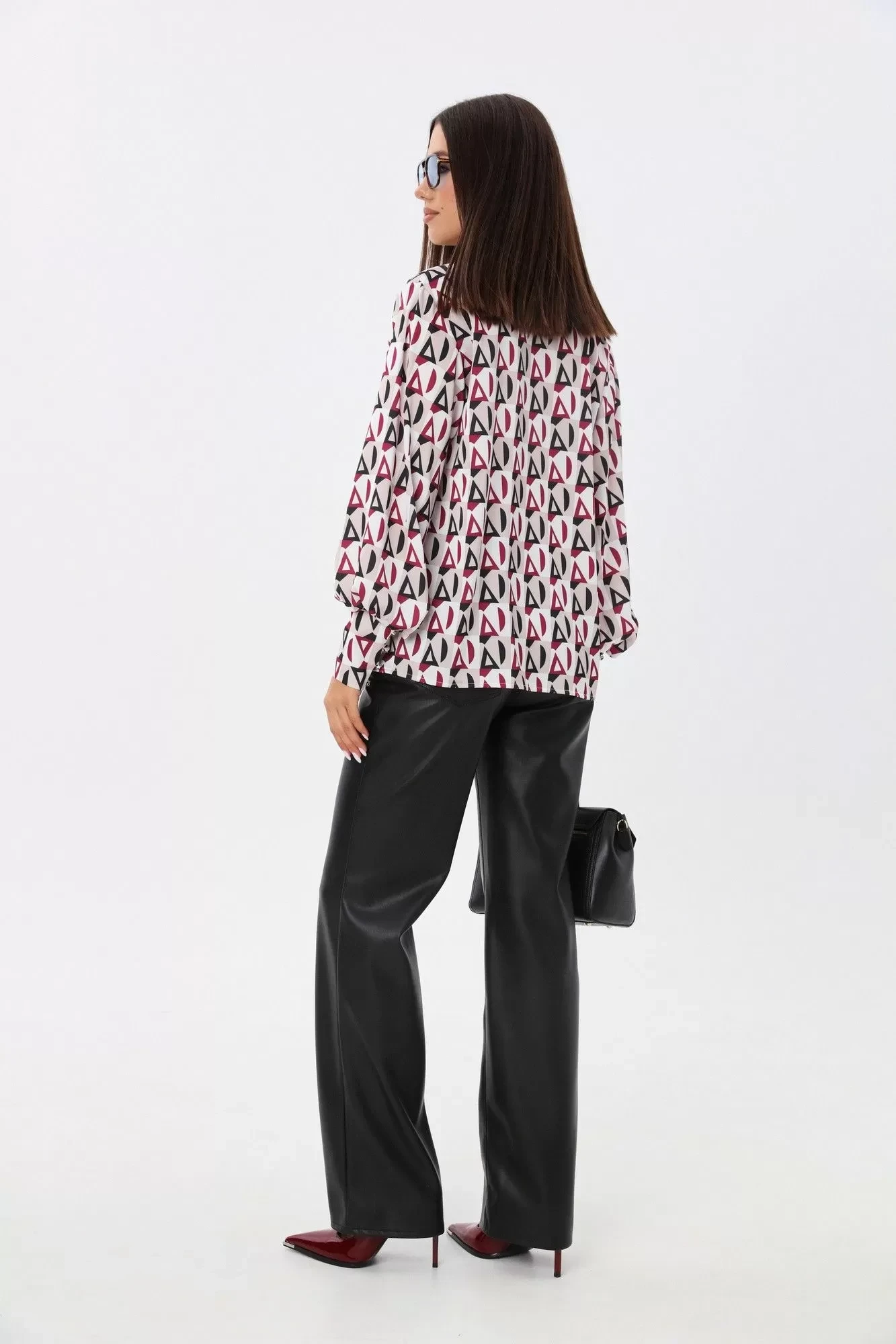 Изящная блуза из нежной ткани с цветочным принтом. Блуза свободного силуэта с V-образным вырезом. Это довольно глубокий вырез, который прекрасно подчёркивает декольте и линию шеи. Застежка на навесные петли и пуговицы. Рукава длинные объёмные втачные заканчиваются широкой манжетой с застёжкой на навесные петли с пуговицами. Рост фотомодели 175 см. Размер у фотомодели – 44.