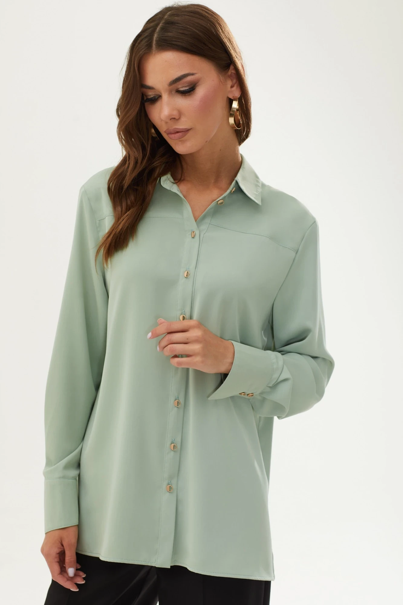 Стильная блузка прямого силуэта из струящейся ткани. Воротник рубашечного типа с застежкой на петли и пуговицы. По переду располагается кокетка. Спинка с кокеткой и бантовой складкой от нее. По боковым швам небольшие разрезы. Рукав со спущенной линией плеча, по низу фигурный манжет с застежкой на петли и пуговицы. Обращаем ваше внимание, что фурнитура может незначительно отличаться от фото.