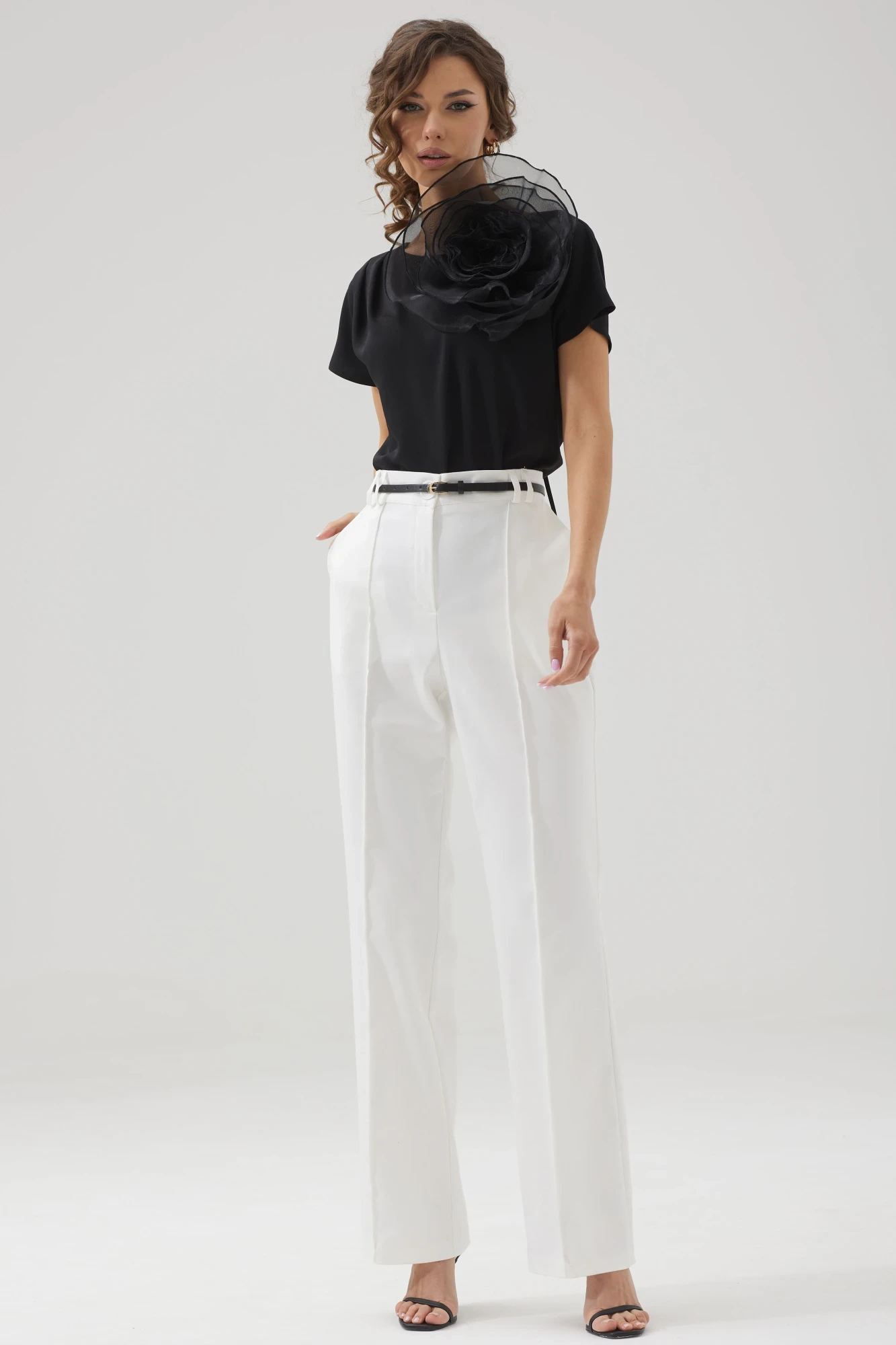блуза нужна каждой женщине и от того из какого материала, какой фасон, цвет и какими аксессуарами дополнена блуза будет зависеть настроение ее обладательницы. в этой модели сошлось все - удачный фасон и цветок -это просто главный элемент и настоящий шедевр этой нарядной блузы. ткань - плотный креп, не блестящий, соответствует размерной сетке. очень подходит к юбке foxy fox 1450 и создает законченный ансамбль в черном цвете. Рекомендую!