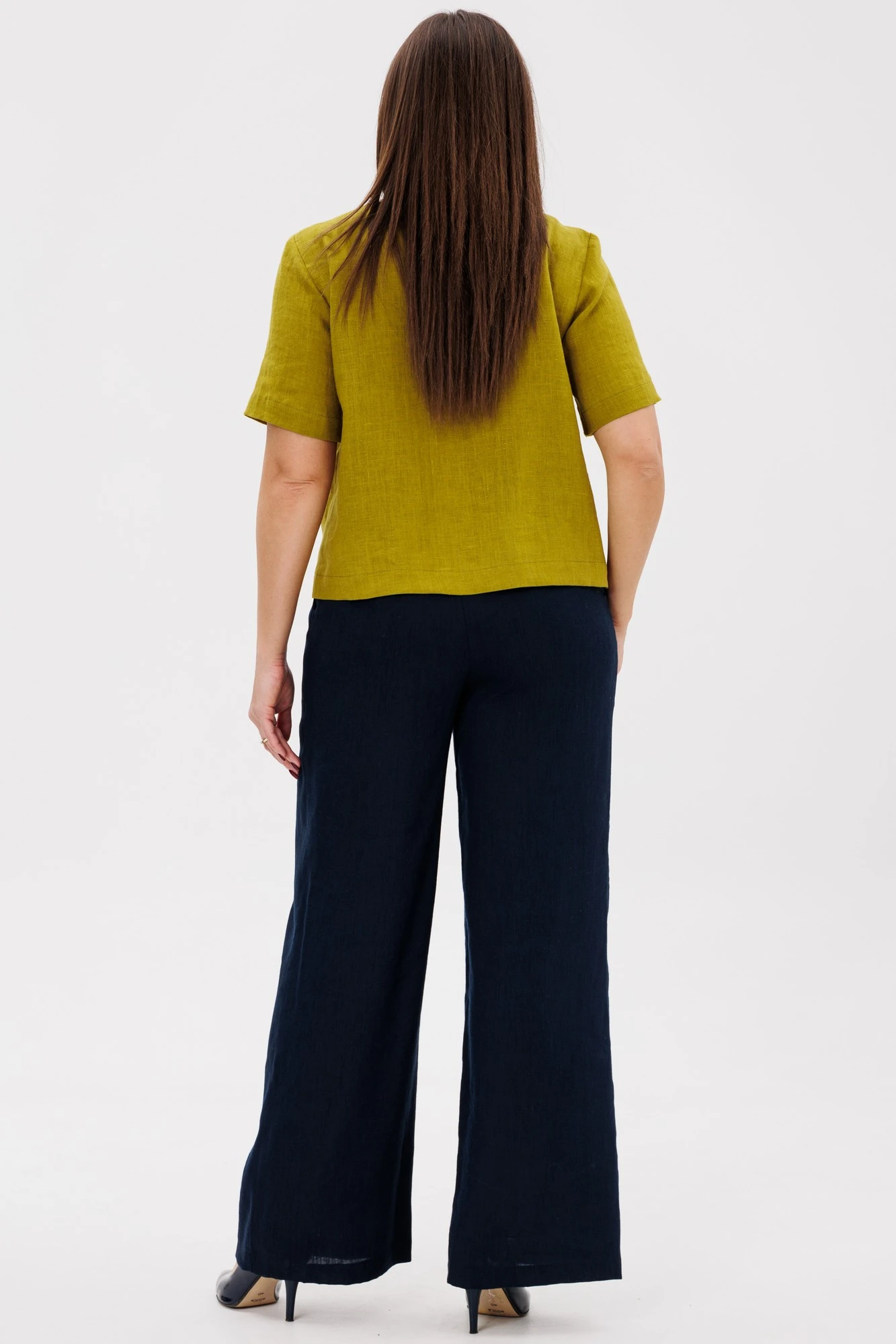 Блуза для летнего офиса и повседневного использования. Будет идеально смотреться с нашими льняными брюками 2086 (на фото), также обе модели можно приобрести комплектом 3128."