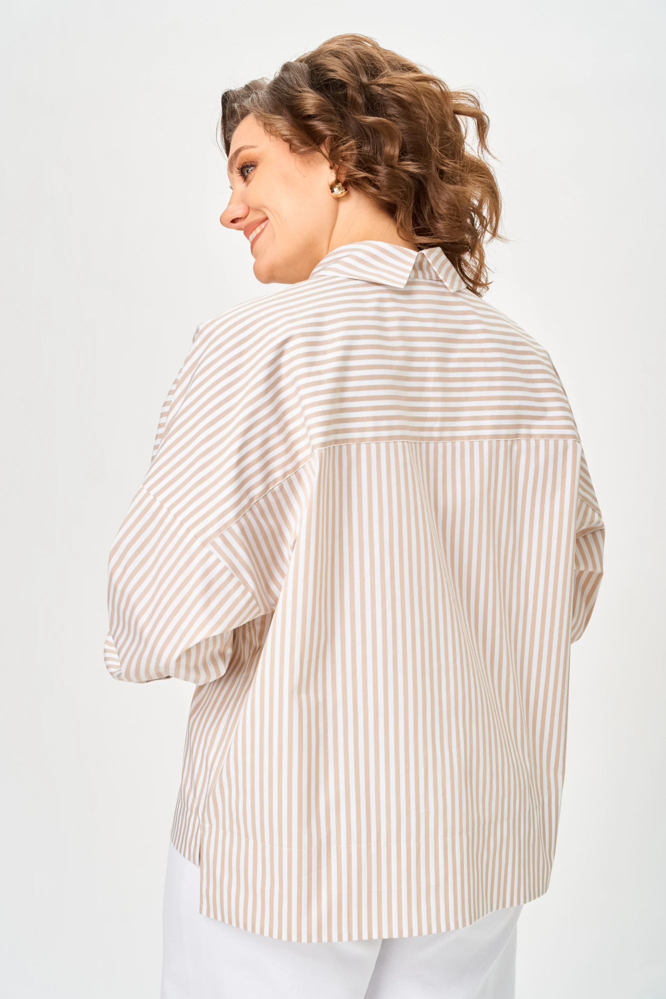 Блузка-рубашка в карамельную полоску — архитектура, которая стройнит