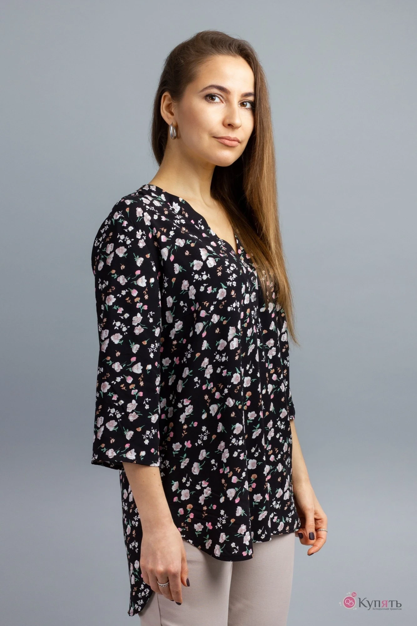 Лёгкая и удобная Блузка свободного кроя с разрезами в боковых швах. Рукава свободные 3/4.