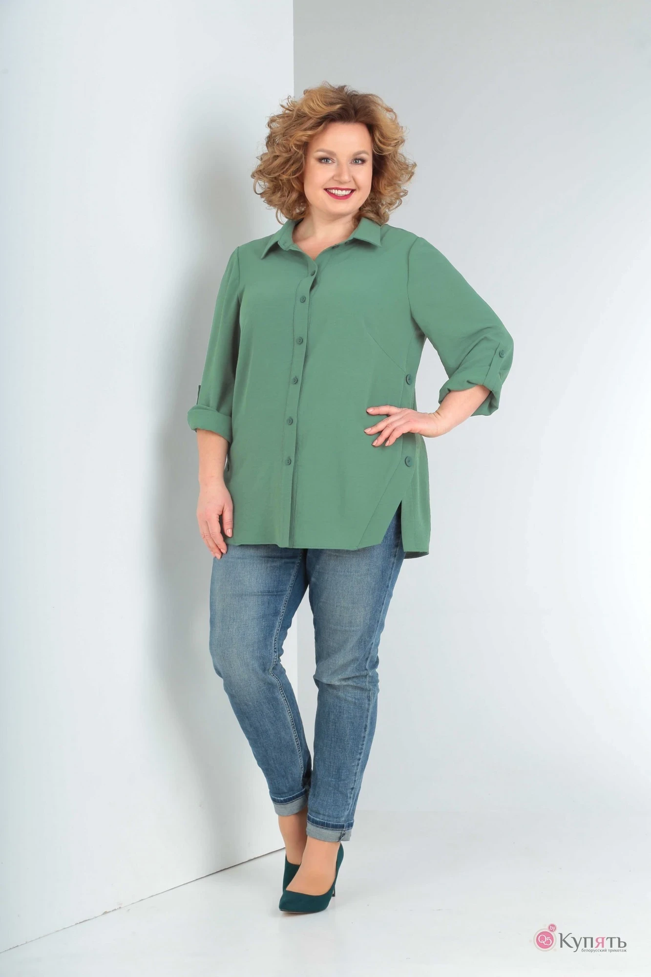 Блуза из блузочной легкой ткани. Блуза с рубашечным воротником на стойке,застежка по переду на пуговицы с нагрудными боковыми выточками.По бокам имеются декоративные фигурные запахи, фиксирующиеся пуговицами. Рукав длинный, имеет пату с пуговицей для фиксации отворота. Блуза выполнена в молодежном стиле и может комбинироваться как с джинсами ,так и с брюками.