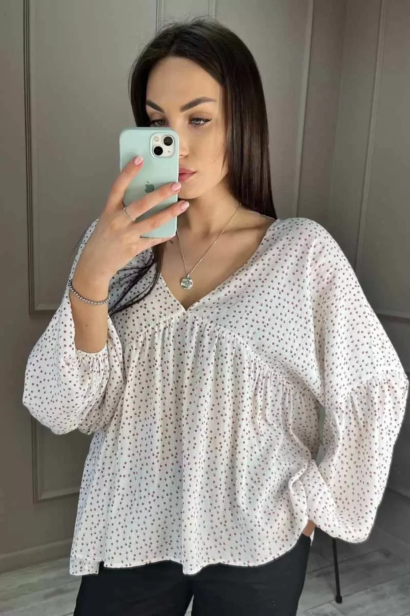 48 Блузка: Длина изделия от высшей плечевой точки до низа - 67см, Длина рукава - 34см, Ширина плеча - 35см, Ширина по груди - 77см, Ширина рукава - 25,2см;