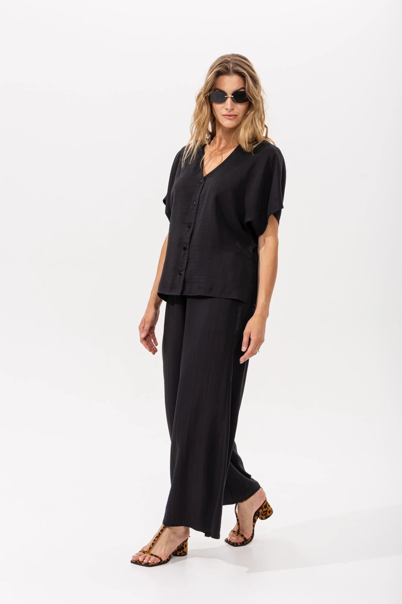 Эта стильная блузка из мягкой, дышащей ткани станет идеальным выбором для создания женственных и удобных луков. Благодаря свободному крою и V-образному вырезу она подчеркнёт вашу индивидуальность и подарит ощущение комфорта в течение всего дня.