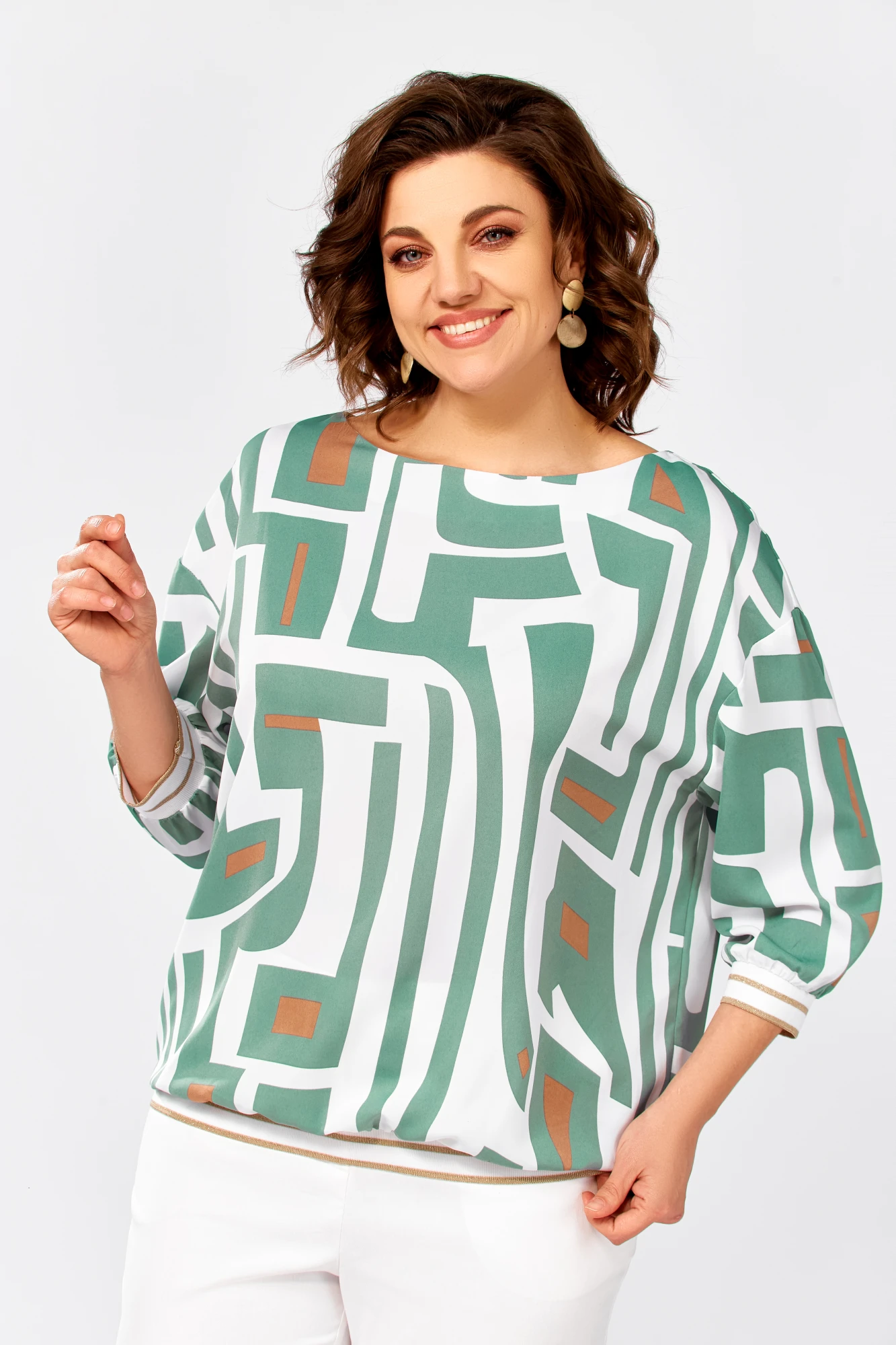 Блузка Swallow 872.6 Принт_молочно-мятный