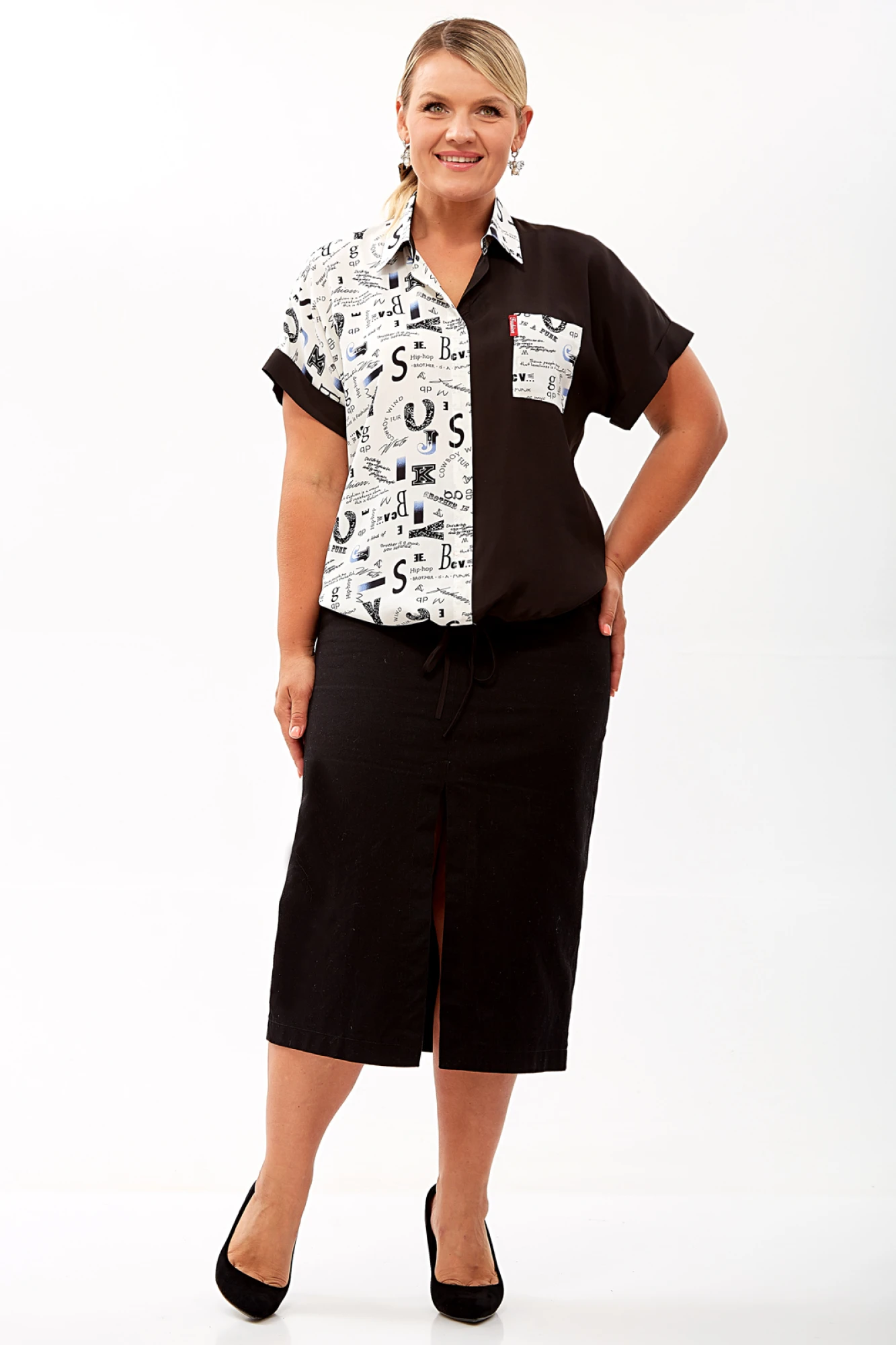 Эта блузка свободного силуэта сочетает в себе элементы классического и спортивного стилей, что делает её универсальной для различных поводов.