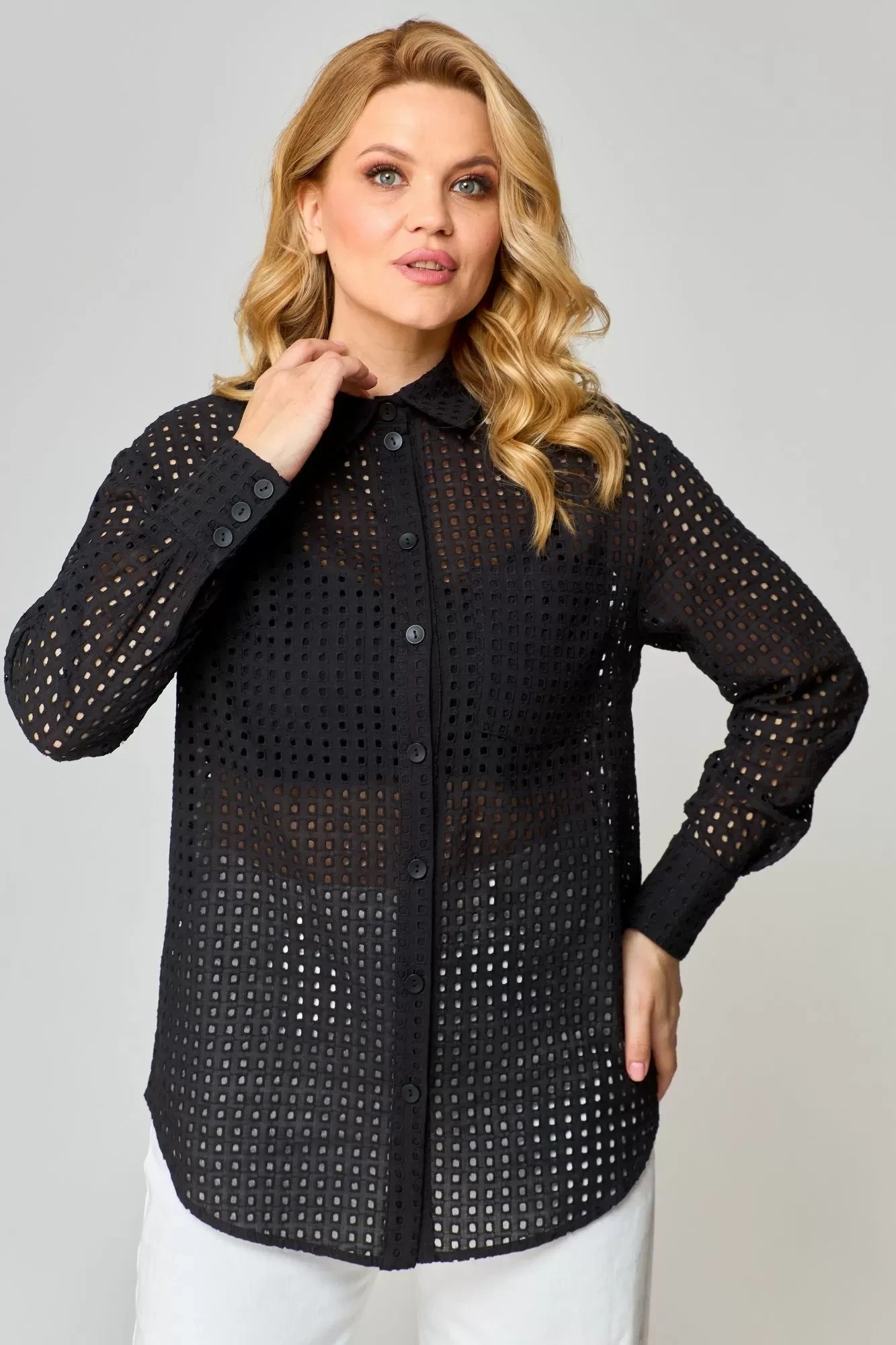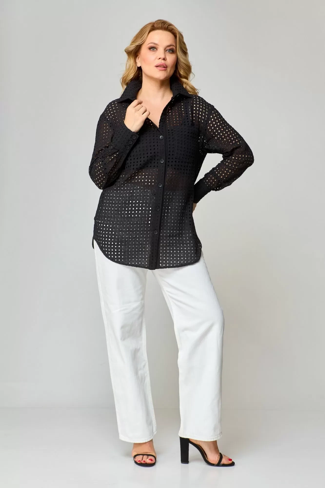 Блузка женская – это универсальный предмет гардероба : одновременно модный и деловой . Белый и черный цвет считается эталоном стиля. Блузка прямого силуэта, выполнена из ткани “решелье” с оригинальным и актуальным дизайном. Полочка блузки с нагрудными вытачками, центральной застежкой на петли и пуговицы по притачной планке. В верхней части левой полочки настрочен карман. Воротник рубашечного типа, на притачной стойке. Рукав длинный, одношовный, по низу со складками и на притачной манжете с застежкой на петли и пуговицы.Данная модель – выбор для тех, кому важен комфорт и стиль. ВАЖНО : стирка при 30 градусах!