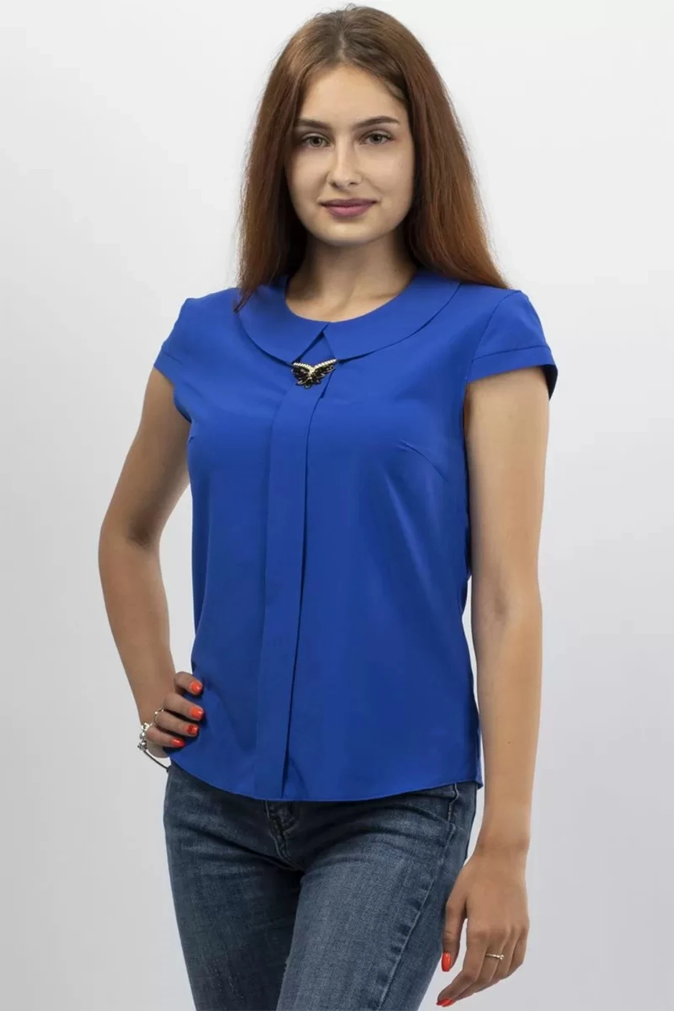 "Блуза женская, слегка приталенная. Застежка на пуговицу по спинке.