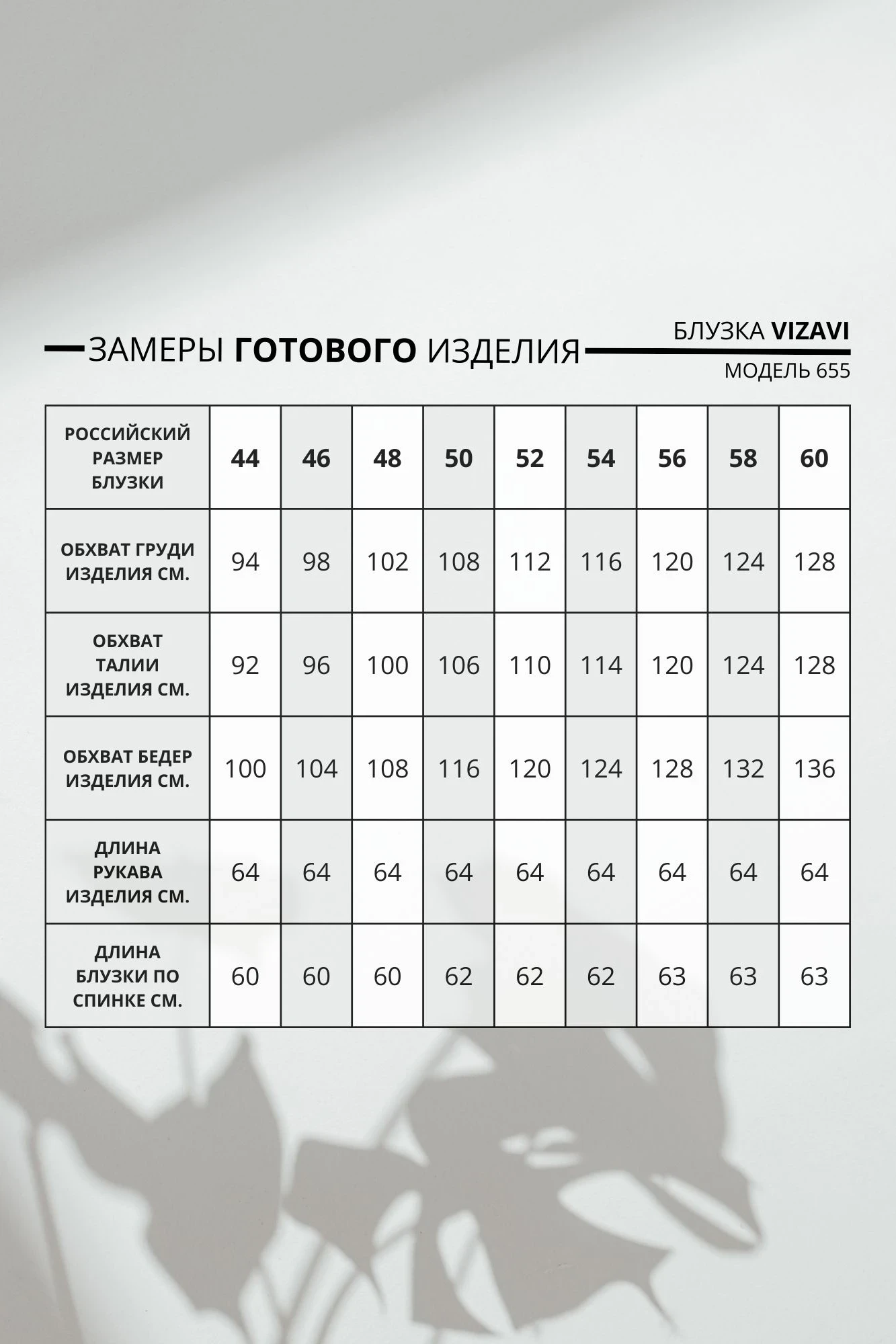 Длина рукава: (р.44, 46, 48)  - 64см.