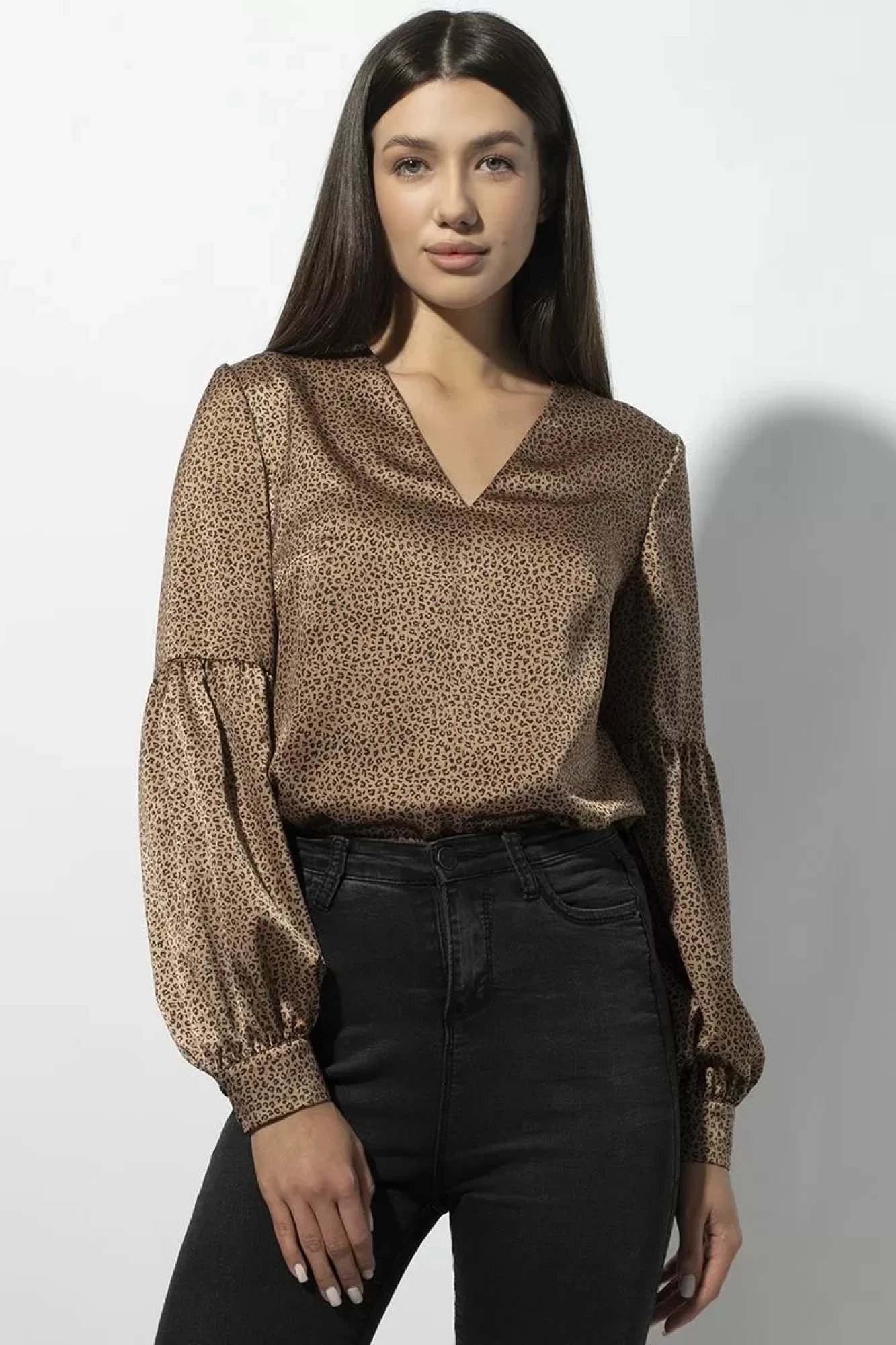 Передняя часть цельная с нагрудными выточками и V-образной горловиной.