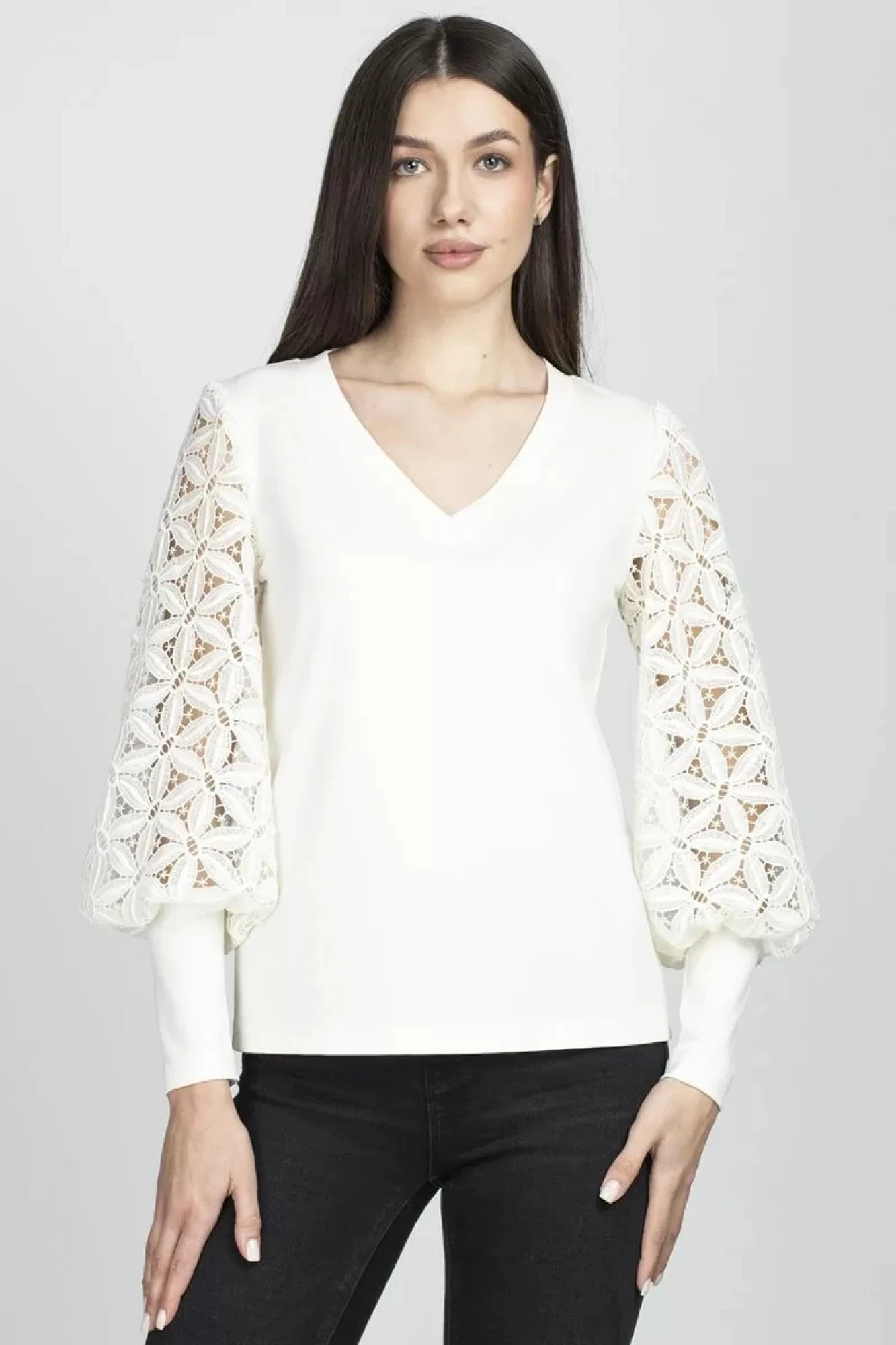 Рукав втачной, выполнен из кружевной ткани, присборенный внизу, с притачной манжетой.