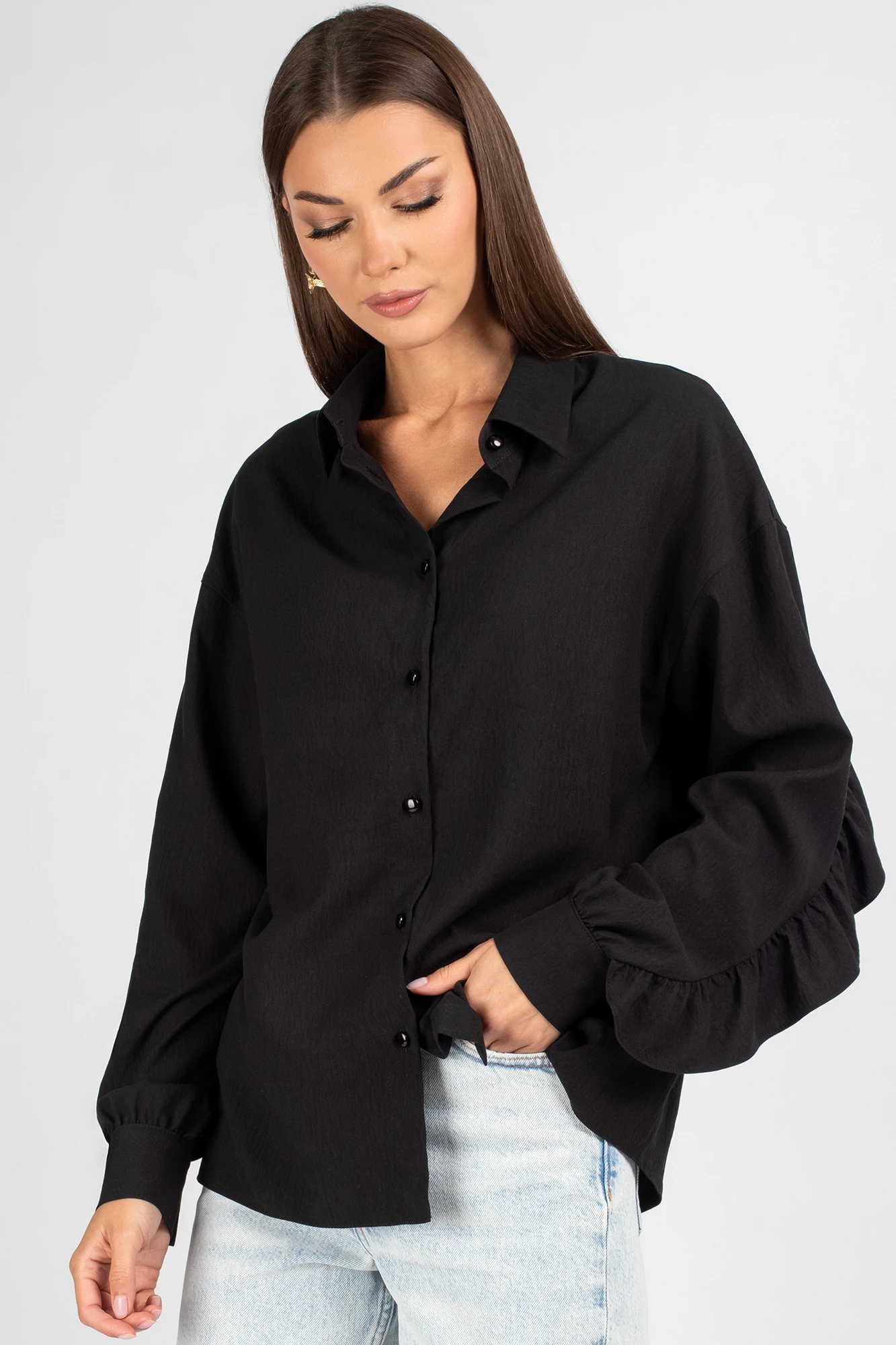 "Женская блузка свободного прямого кроя OVERSIZE-силуэта со спущенной линией плеча — идеальный выбор для создания актуального и непринужденного образа.