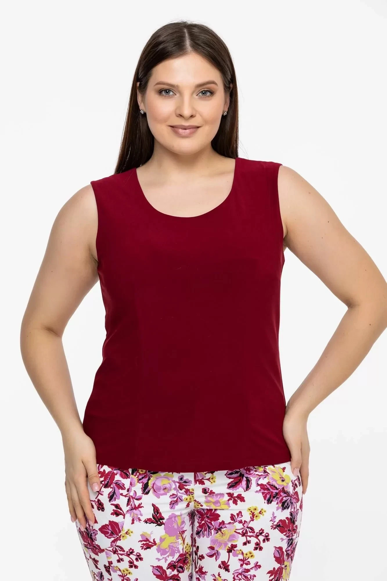 Топ без рукавов однотонный - отличный выбор. Этот стильный и универсальный предмет одежды можно сочетать с различными нижними деталями, создавая разнообразные образы. Такой топ будет прекрасно смотреться как с джинсами, так и с юбкой или шортами. Верхняя часть топа на широкой обтачке, что хорошо держит грудь и не просвечивает белье.
