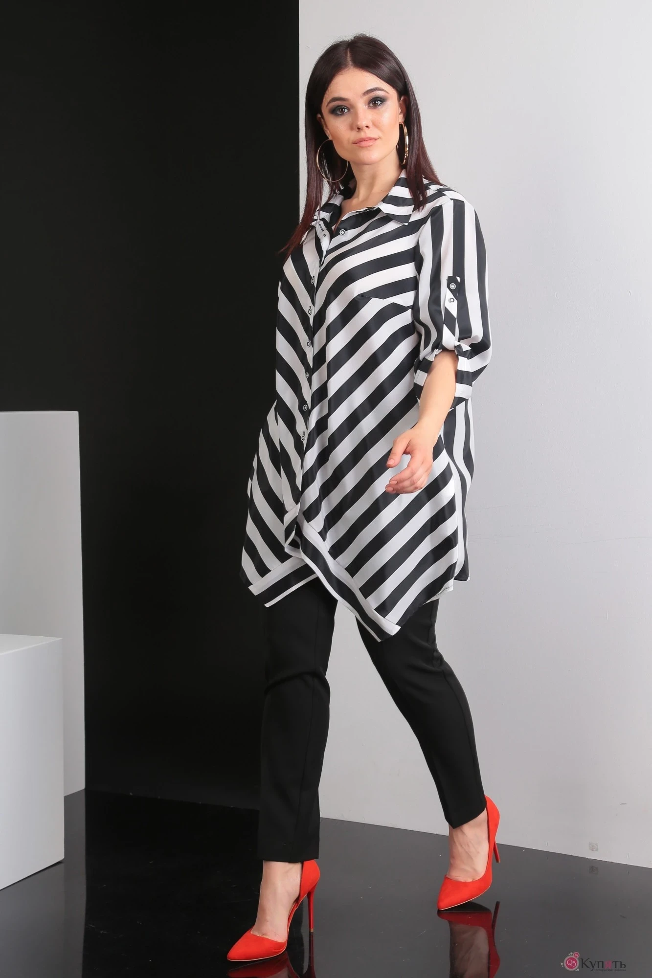 Блузка, туника, рубашка Мода-Юрс 2413 черная крупная полоска