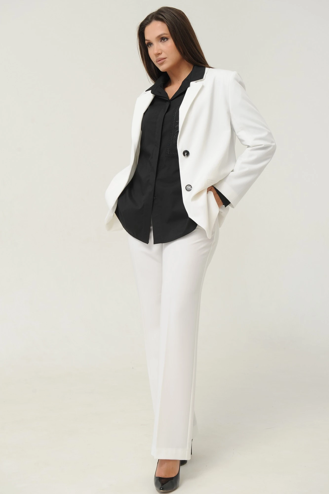 Воротник отложной на стойке. Застежка центральная потайная на петли и пуговицы, спинка с кокеткой. Полочка с декоративным накладным карманом с вышивкой, спинка с кокеткой, в боковых швах разрезы. Рукав длинный со спущеной линией плеча, одношовный с односторонними складками и притачной манжетой по низу.