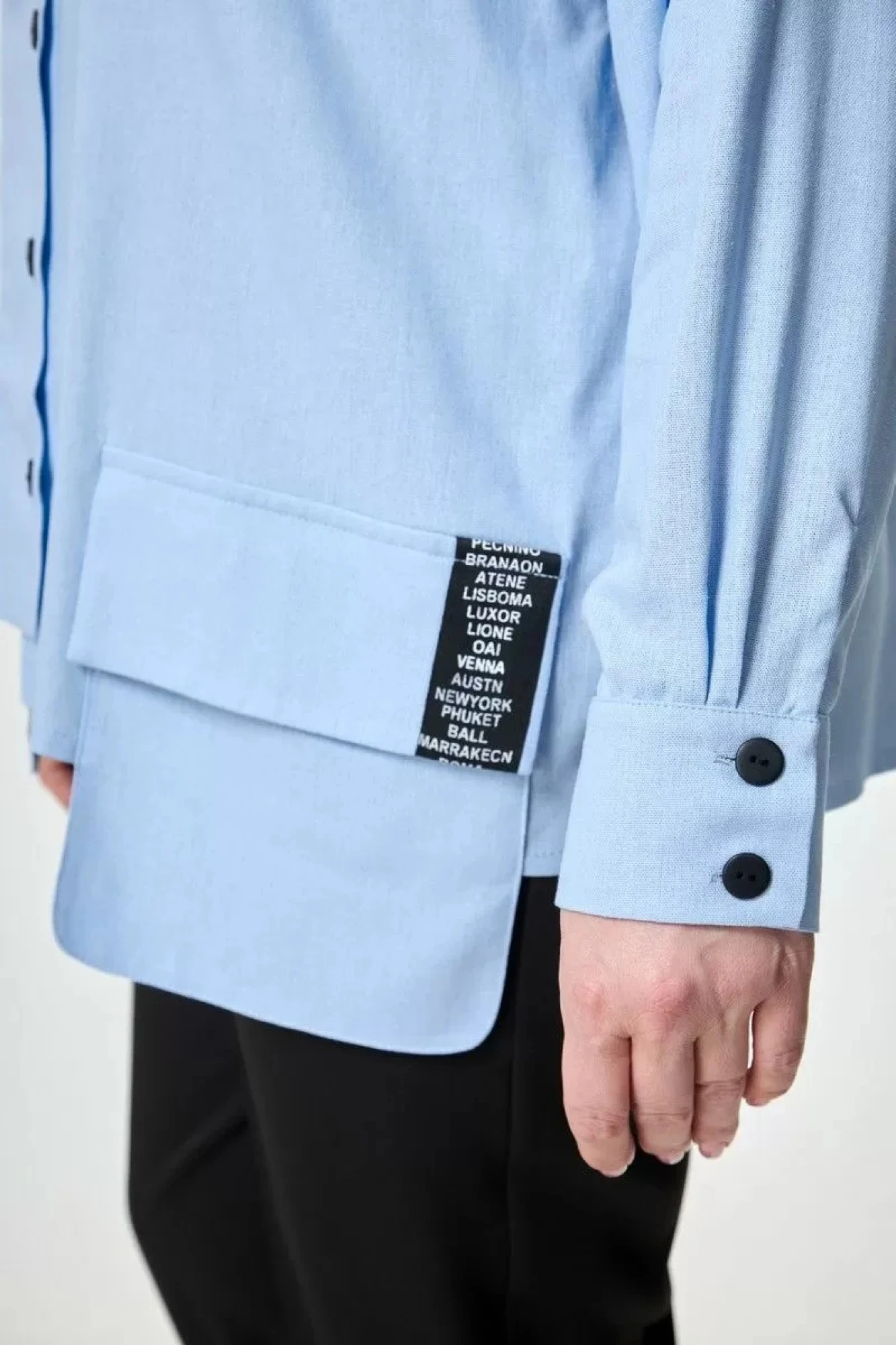 Рубашка оверсайз, ассиметричного кроя, застежка на петли пуговицы. Рукав длинный. Классический рубашечный воротник. По переду набедренный функциональный карман. Так же рубашка декорирована тесьмой. Рубашка - это базовая вещь в гардеробе любой девушки /женщины, а новый дизайн придаст вашему образу свежести и уникальности