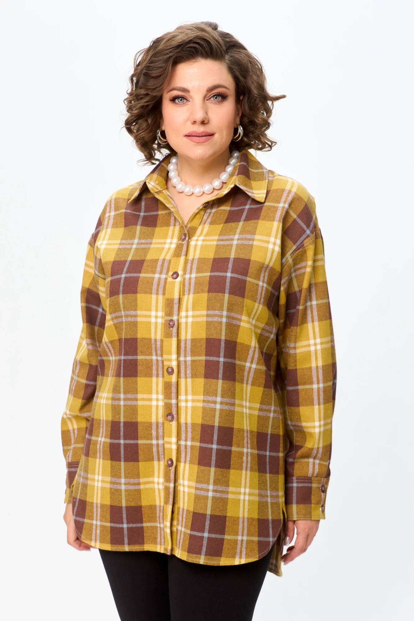 Рубашка Avenue Fashion 0327-1 клетка зеленый, горчица, молоко, коричневый