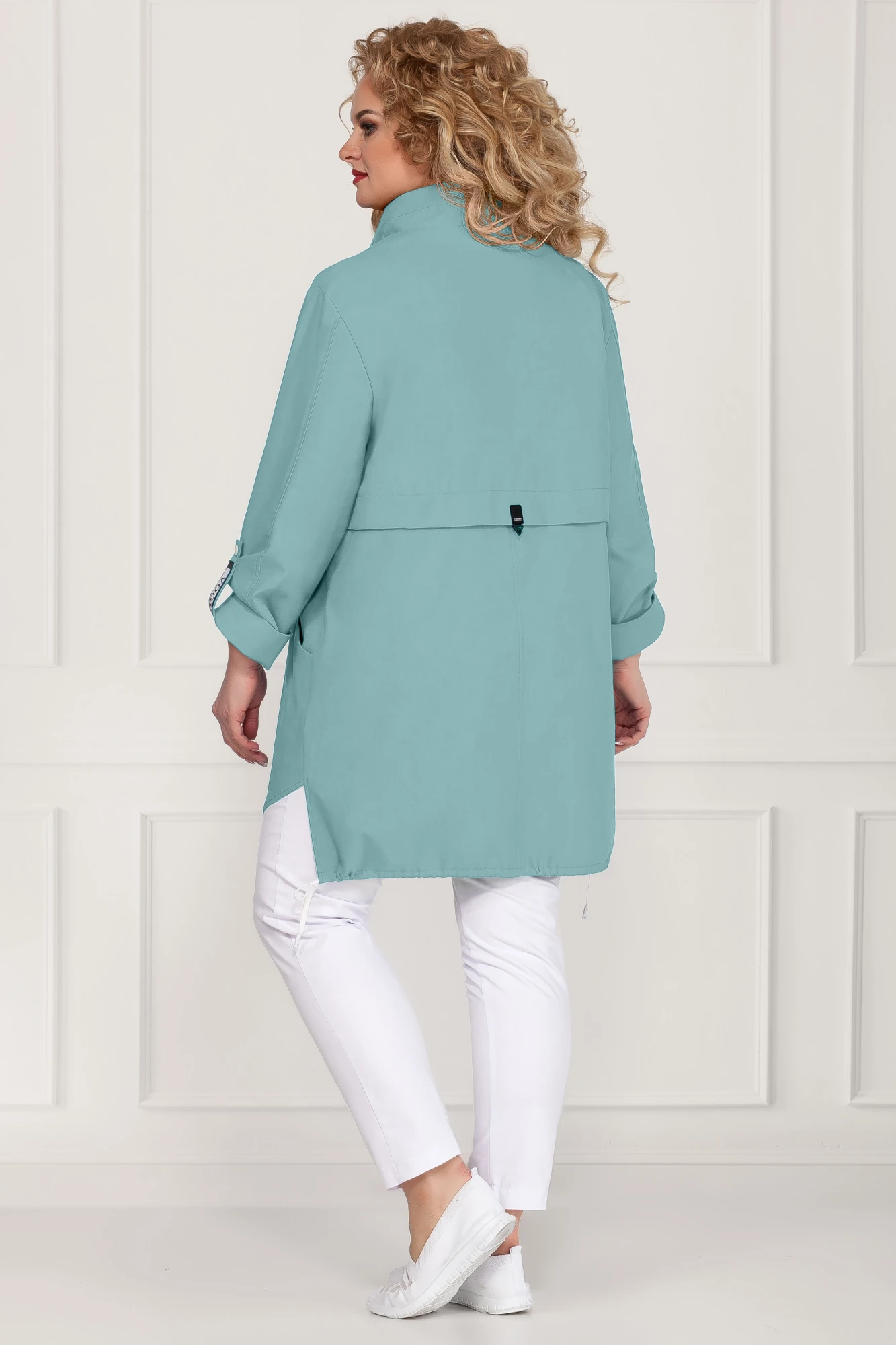 Рубашка​ женская из плотного джинса, прямая, с центральной застежкой на 8 кнопок, с воротником"стойка"с кулисой и шнуром, перед с фигурными рельефами и карманами в швах , левая часть переда с кокеткой и клапаном с кнопками.Спинка с кокеткой и пришивным декором, рукава рубашечные с вертикальными рельефами и манжетами с патой на кнопках. По кокетке и патам настрочена декоративная тесьма.