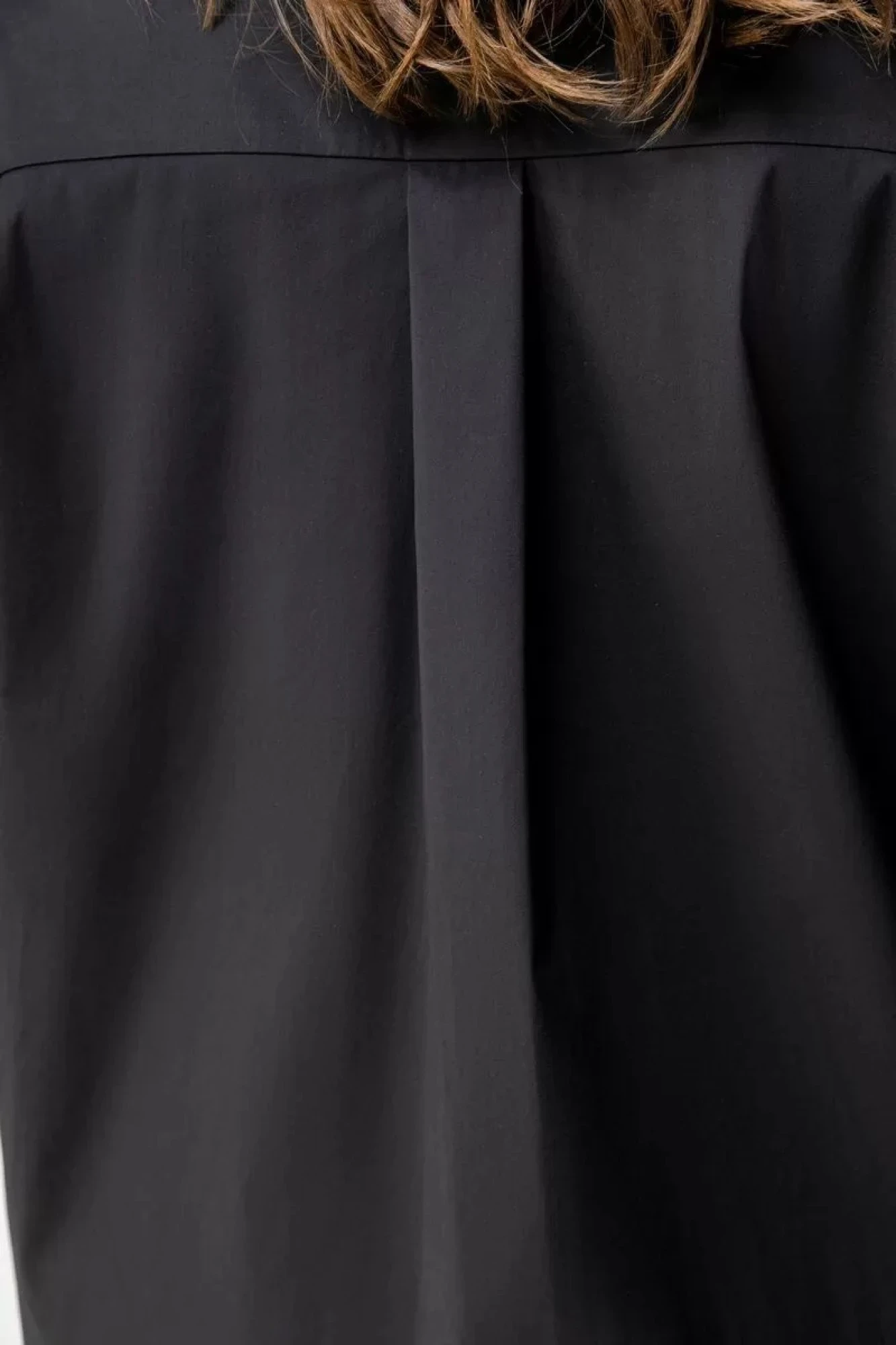 Блуза женская полуприлегающего силуэта выполнена из хлопковой ткани. Застежка центральная на кнопки, воротник на стойке рубашечного типа, рукав втачной, по низу на притачной манжете. Декором служит обьемый принт на левой полочке и рукаве.