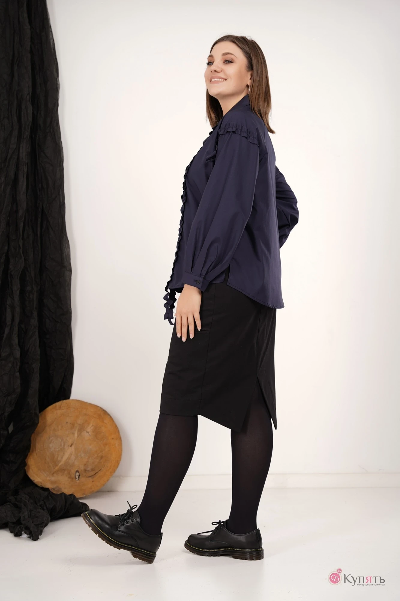 Модная рубашка для женщины удобная и практичная. Эта легкая рубашка - OVERSIZE может быть альтернативой нашей классической хлопковой рубашке. Модель прямого силуэта,слегка расширена к низу. Длинный свободный рукав реглан, внизу рукава бантовые-складки, придающие рукаву объем, рукав заканчивается манжетой, застегивающейся на пуговицу. Необычность рубашки придает двойной воротник рубашечного типа на отрезной стойке. Застежка центральная с потайной пуговичной планкой, на левой половинке декоративный элемент две вертикальные рюши чуть длиннее изделия, еще один декоративный элемент горизонтальная рюша на левом рукаве. Рекомендуем дополнить образ женскими брюками любого кроя из коллекции нашего бренда. Модель выполнена из приятной к телу ткани