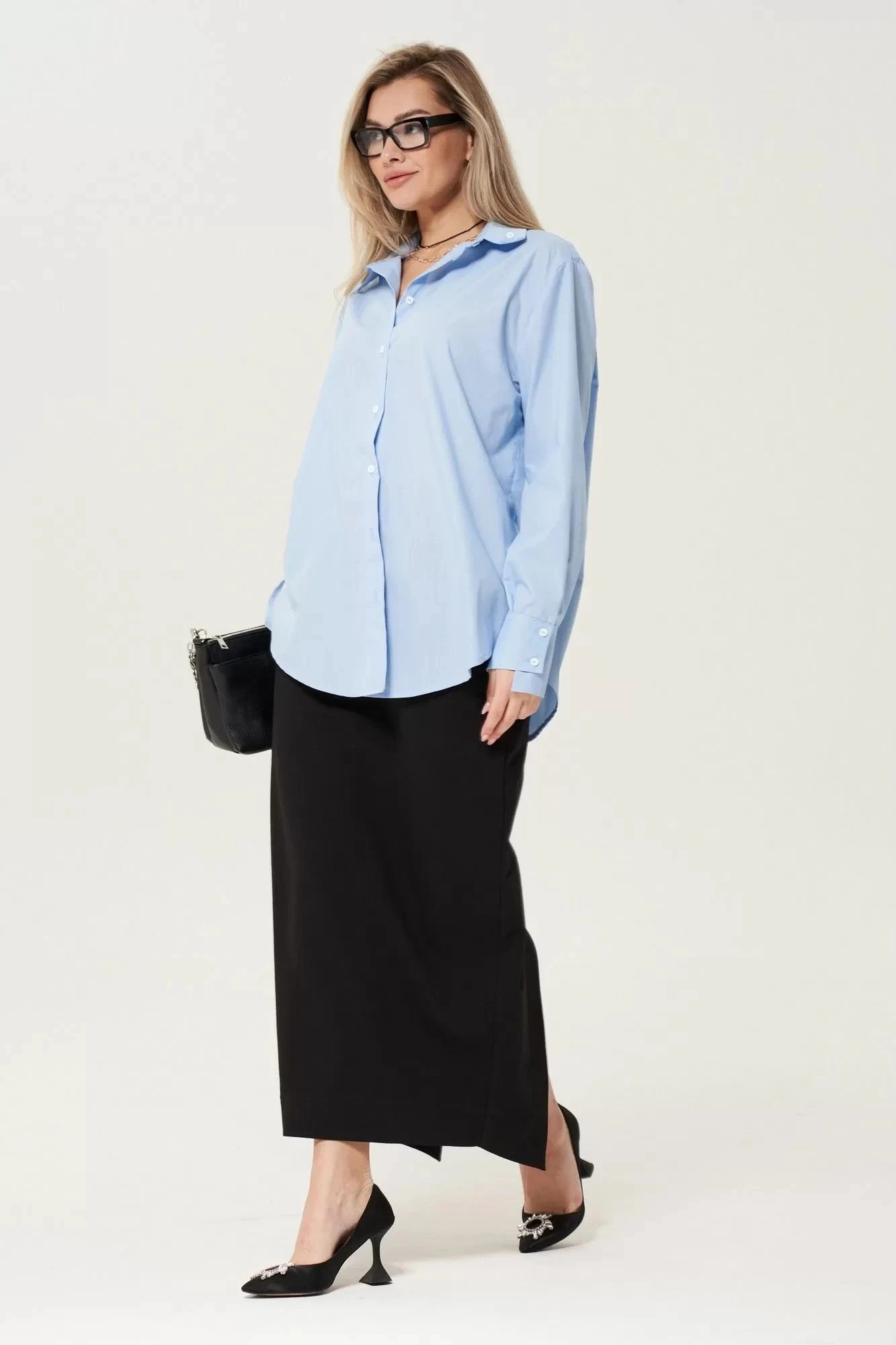 Это исключительное сочетание стиля и комфорта. Асимметричная манжета добавляет вашему образу экстравагантность и утонченность одновременно. Пуговица на воротнике подчеркивают внимание к деталям, придавая рубашке изысканный вид. Спущенная кокетка придает легкость и современный акцент. Модель оверсайз создает свободный, стильный силуэт, позволяя вам чувствовать себя комфортно и выглядеть по-настоящему модно. Универсальная длина делает ее идеальным выбором для различных ситуаций. Модель представлена в трех цветах: белый, голубой и черный.