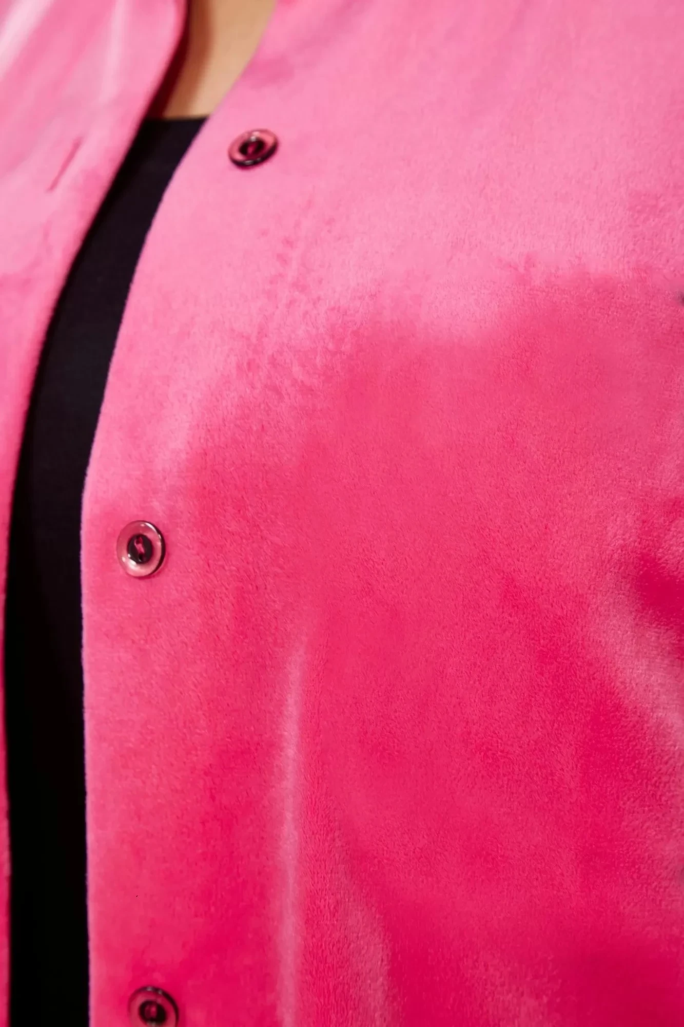 Велюровая ткань делает ее особенно мягкой и приятной на ощупь, а свободный крой очень универсален, его удобно носить в любое время года. Благодаря своей бархатистой текстуре, костюм станет любимой вещью вашего гардероба. Ткань не мнется и не вытягивается в области локтей, велюр густой и плотный, премиум класса. По полочке накладной карман, в боковых швах разрезы. Застежка на петли, пуговицы.
