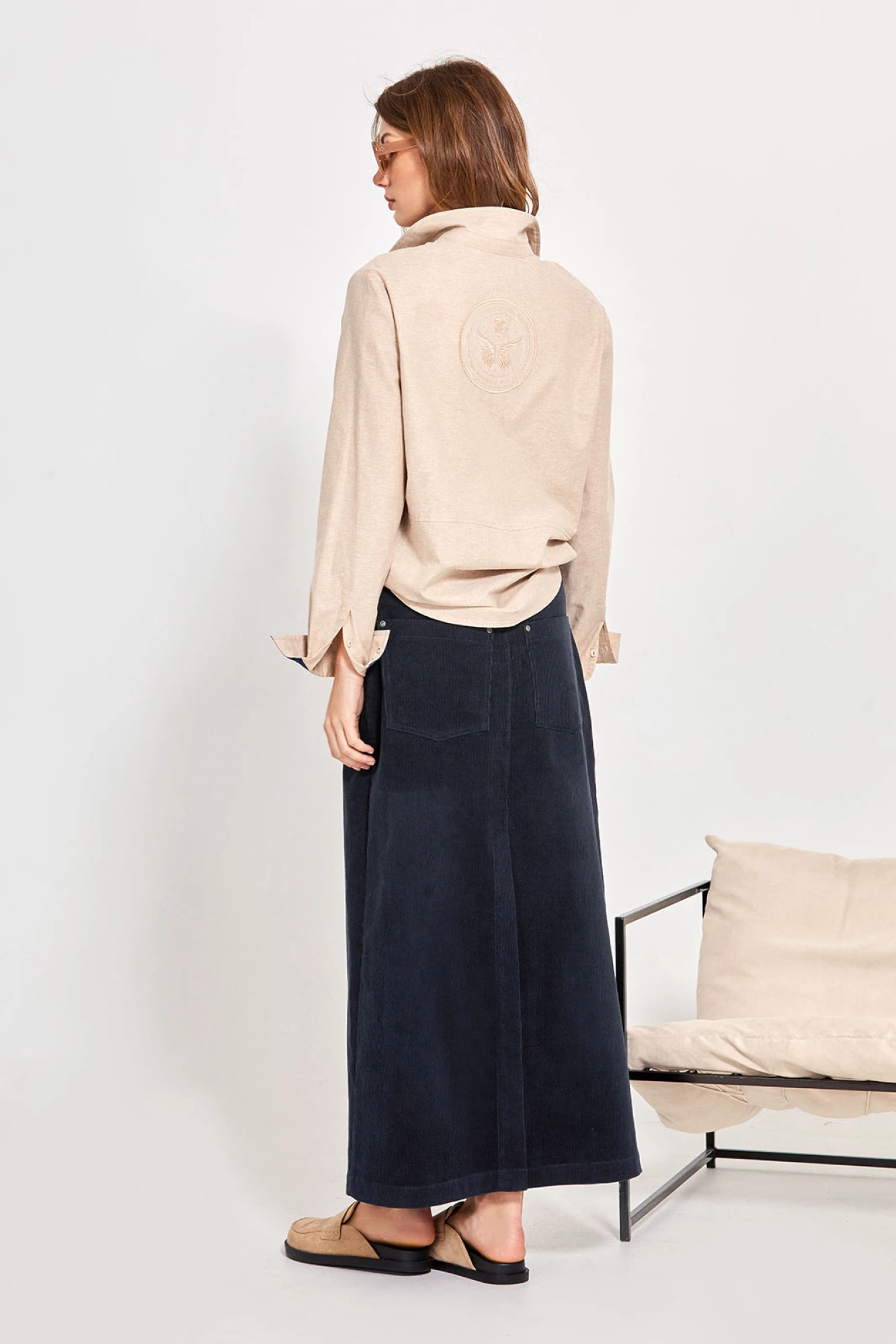 - вышитая аппликация спереди на левом кармане и на спинке "