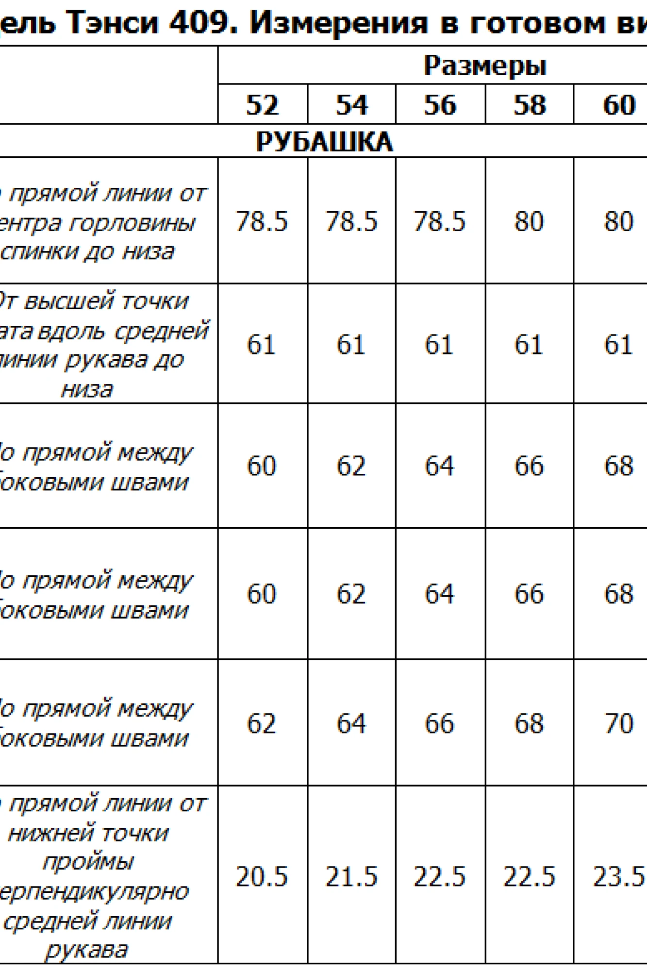 Рубашка прямого кроя с застёжкой-планкой на шесть петель и пуговиц. На переде обработаны нагрудные вытачки, кокетки, накладные карманы с клапанами, прорезные карманы с листочками. Спинка с кокеткой, складкой и отделочным клапаном по центру. Рукав втачной, длинный, по низу застёгивается манжетой с пуговицей. Воротник стояче-отложной с отрезной стойкой. В боковых швах разрезы, низ рубашки разноуровневый.
