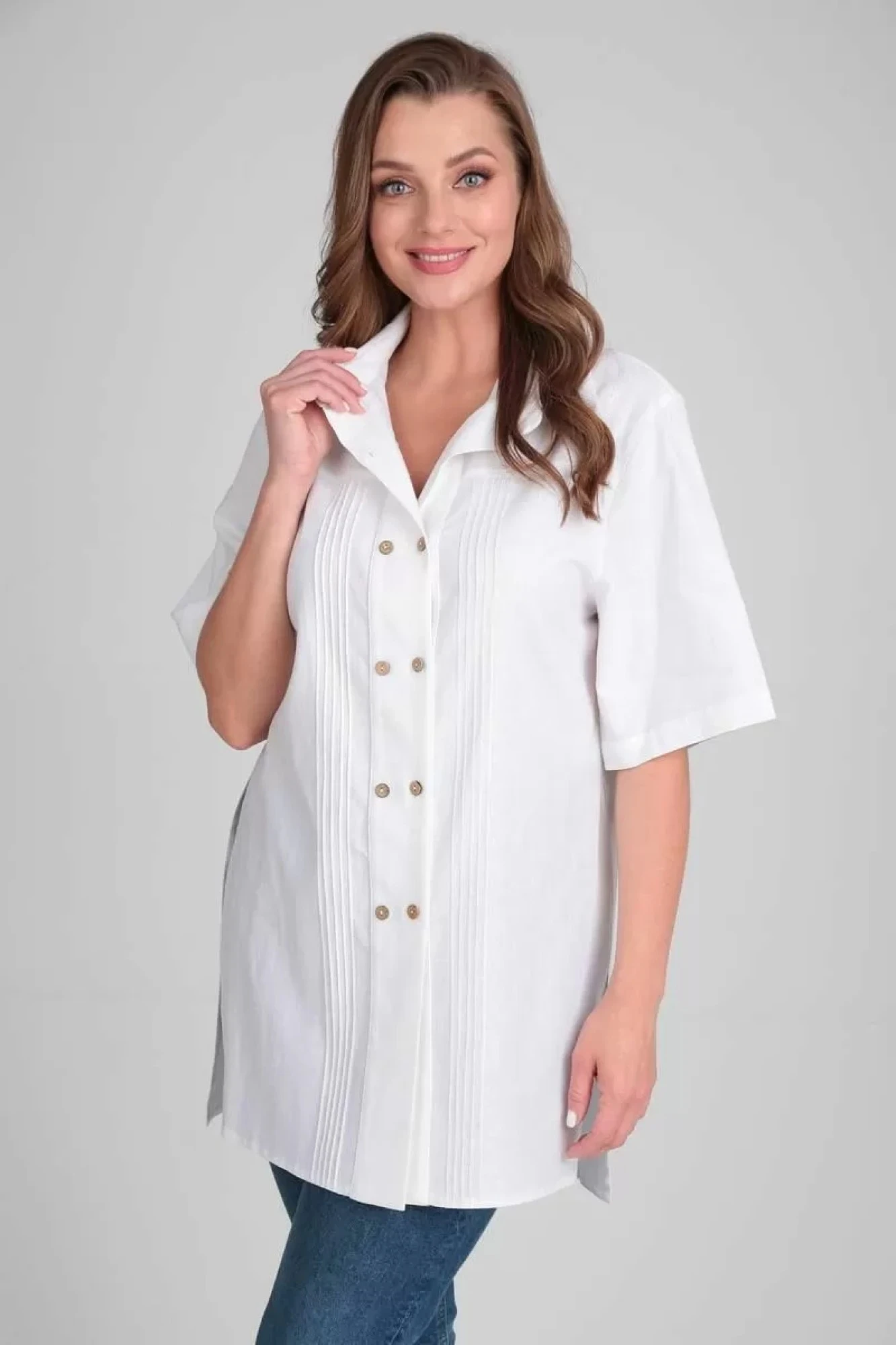 Рубашка женская, удлиненная, прямого силуэта, выполнена из льняной ткани.